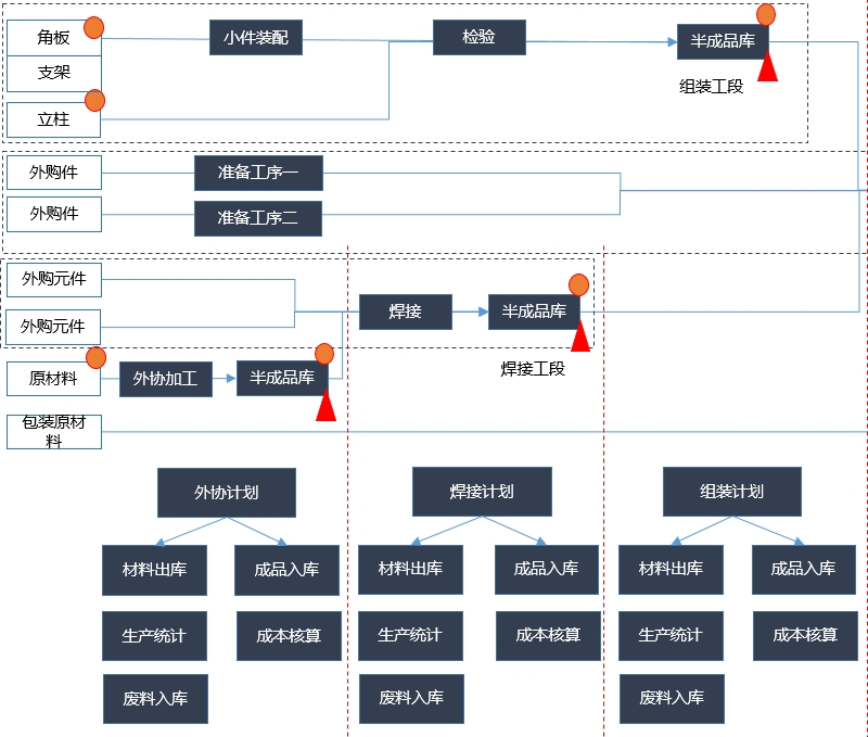 針對企業信息化實施維度,我們建議:以產品加工工藝為基礎,建立各部門共同確定生產管理點,提升管理點的管理價值,達到管理平衡。各管理點具體分布如圖1所示。