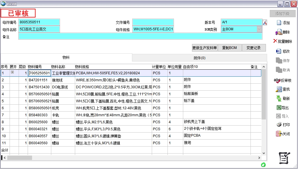有部分制造型企業會使用到BOM和MRP計算,對于產成品的材料組成復雜的企業,使用MPR計算可以極大提高生產用料計算的準確性和及時性。
