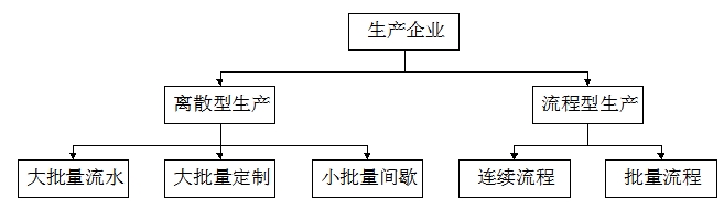 本方案基于如下NC對生產企業類型的劃分,旨在解決“大批量流水”這類生產企業的產供銷一體化。