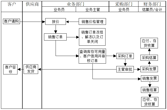業務包括:銷售、采購、庫存、車間等相關部門各種業務單據和交易處理。