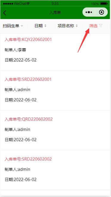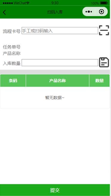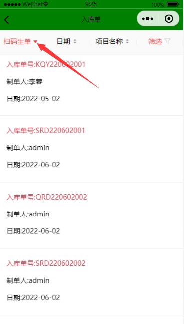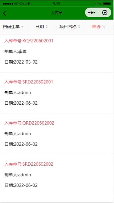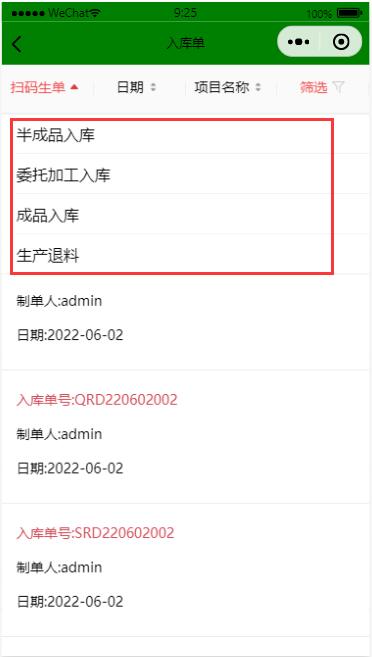 如果商品(包括產(chǎn)成品、半成品、原材料)使用了一維碼、二維碼、流程卡的,可以使用微信小程序掃碼生成入庫單,數(shù)據(jù)會反向同步到ERP。