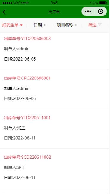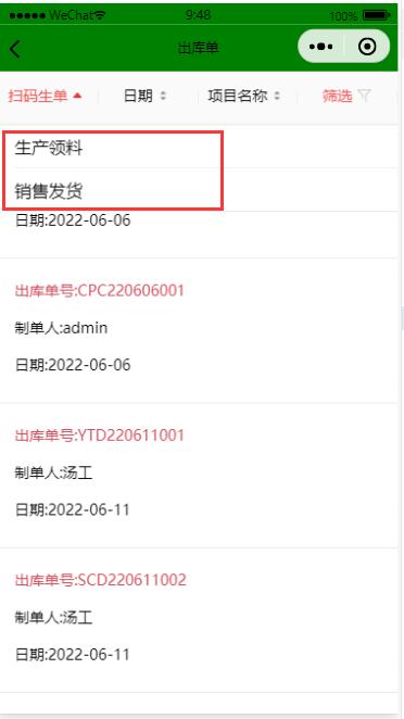 出庫單對應ERP中的各種出庫單,如銷售發(fā)貨單、生產領料單、其它出庫單等,數(shù)據(jù)在ERP中錄入,同步到微信小程序端