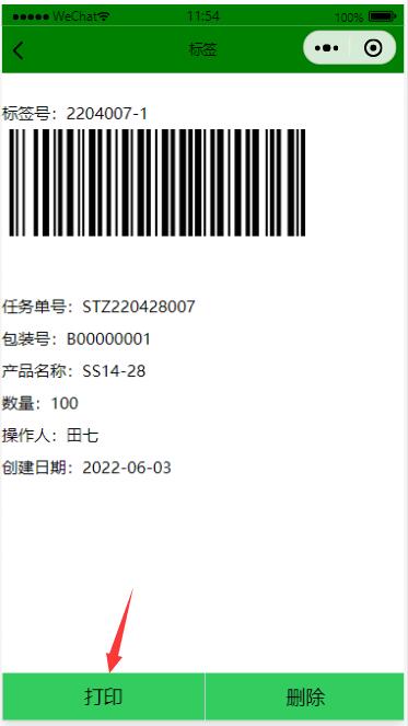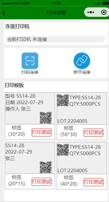 手機端的打印機必須是藍牙打印機,打印機用于打印產品標簽。