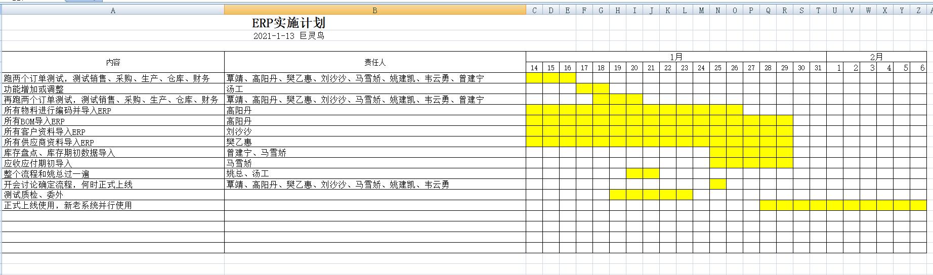 6)解決老板和顧問的配合。上ERP顧問一定要和老板溝通,按步驟來定實施計劃。不要隨意改變計劃,改變實施目標。顧問,老板,員工三者相當于老師,家長和學生。家長主要負責監督和檢查,老師負責教學和指導。提供專業意見。老板在實施步驟,實施計劃上萬萬不可隨意改變,如果有不能不改的理由,一定要與顧問商量,不可一意孤行。否則會導致上線失敗。所以每到一個階段,都要與老板單獨溝通。匯報情況,提出建議,老板要抽出時間來檢查進展情況。最后是及時付錢,ERP軟件實施是個辛苦而且要求很高的職業,高智商,高情商,對綜合知識要求也高的職業。真正按合同辦事,軟件安裝了,上線了,該給多少就是多少,講信譽,講道德,別疑神疑鬼,人家做到了,不要當吝嗇鬼,不要做無賴,否則吃虧的是老板自己。出現問題時,不要驚慌失措,及時通知顧問服務,天下沒有不出問題的軟件,所有軟件都有BUG。打補丁就是,真是解決不了的幾乎沒有。除非是自己選型時i沒看好,有關鍵功能軟件無法實現,和顧問商量二次開發或變通解決。或者未來版本能夠解決。很多企業是需求不斷增加,是必要需求嗎?不是,放一放。多和顧問溝通商量,ERP成功是可以看到的。