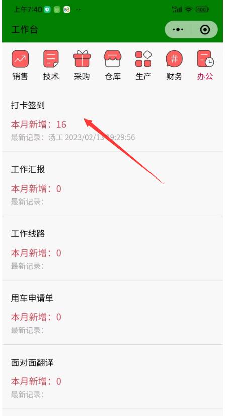 打開路徑:【首頁】-【工作臺】-【辦公】-【打卡簽到】