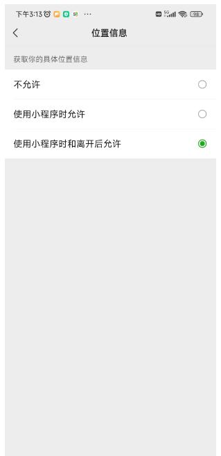 位置信息選擇使用小程序時和離開后允許