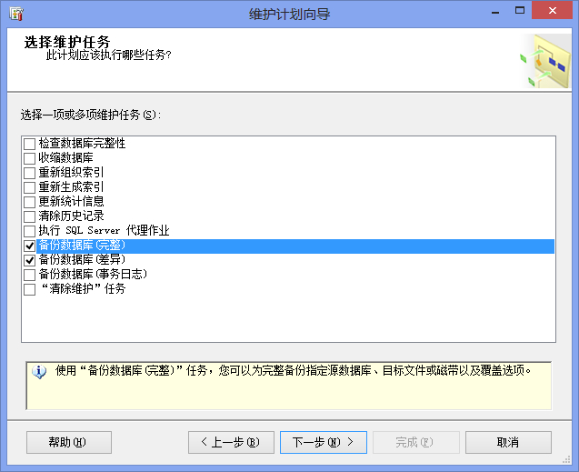 (3)單擊“下一步”按鈕,選擇維護任務,這里就是可以在維護計劃中執行的任務,如果你想執行的任務在這里沒有,那就還是不用維護計劃來做,自己寫SSIS包或者SQL語句吧。