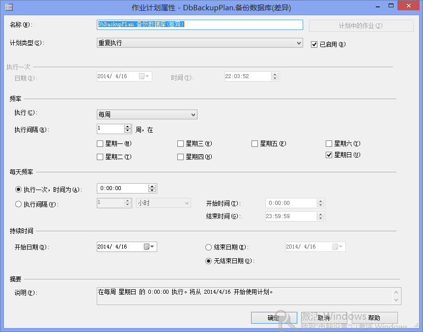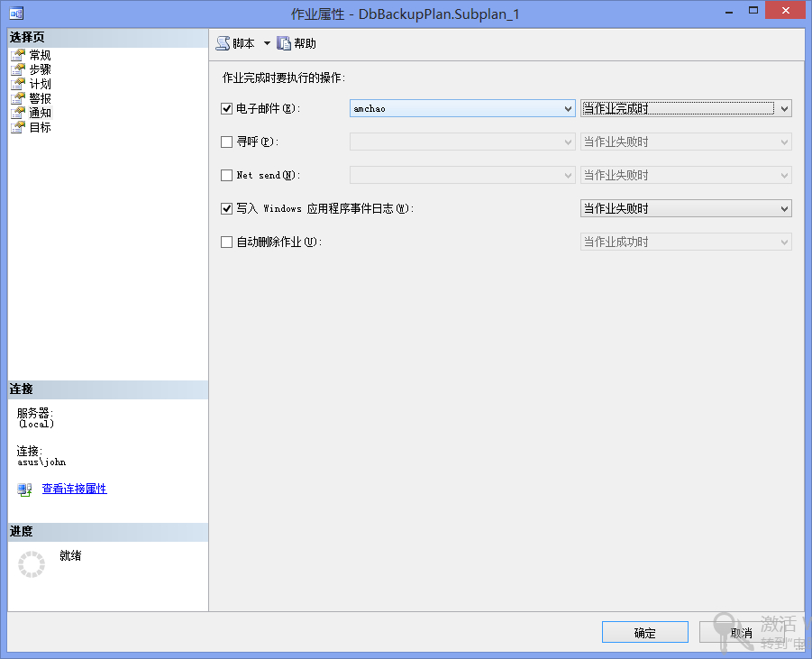 創建好步驟以后,接下來就是創建計劃,創建計劃的操作十分簡單,界面上說明的很詳細了,我就不多說了。另外還可以配置警報和通知,不過一般很少用這個。