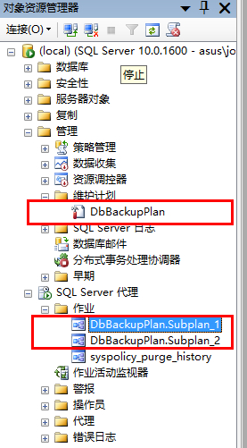 (10)完成后,我們再刷新下對象資源管理器,我們可以看到對應的維護計劃和該計劃對應的作業