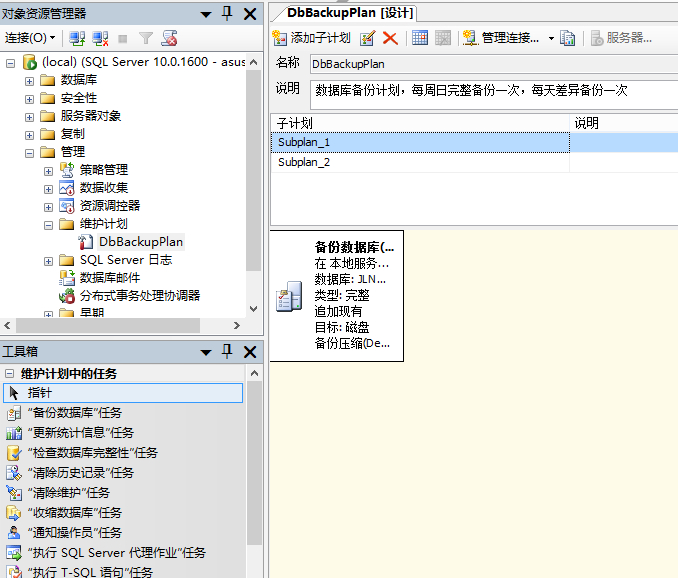 下面我來講一下如何通過維護計劃來實現完整備份+差異備份: