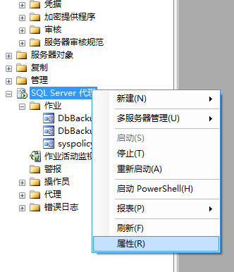 在SQL Server中出于數據安全的考慮,所以需要定期的備份數據庫。而備份數據庫一般又是在凌晨時間基本沒有數據庫操作的時候進行,所以我們不可能要求管理員每天守到晚上1點去備份數據庫。要實現數據庫的定時自動備份,最常用的方式就是使用SQL Server代理中的作業。確保已啟動SQL Server Agent服務