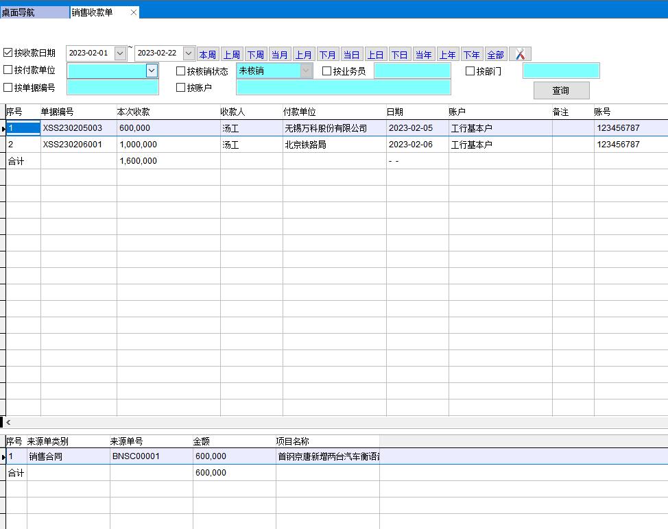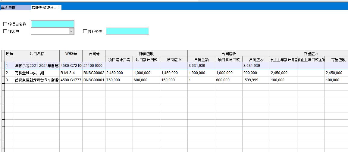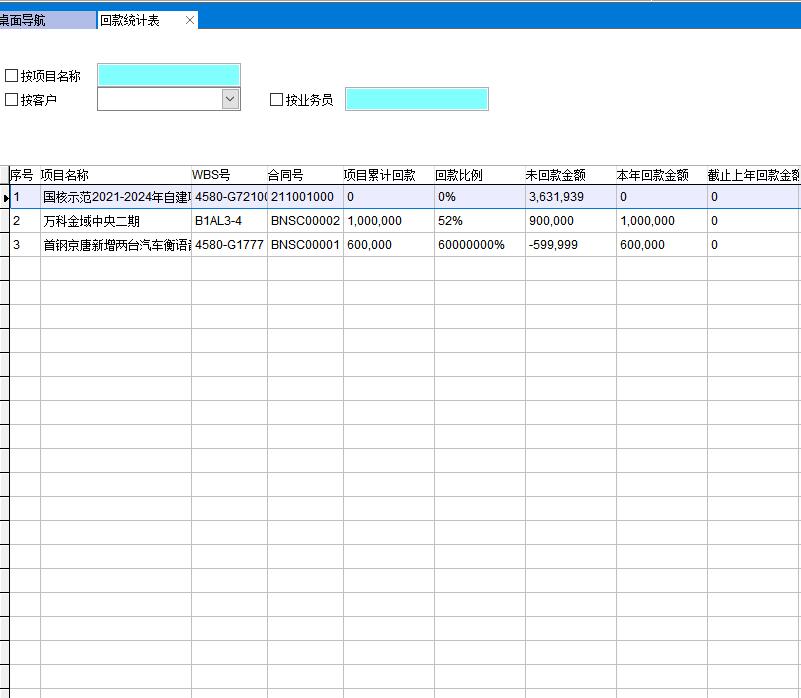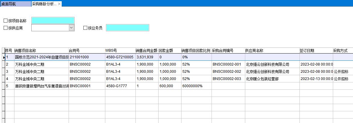 軟件能根據(jù)合同號、WBS號,供應商名稱、項目名稱、以及合同時間進行自定義搜索,并能顯示該項目銷售情況、采購進度情況、工程進度情況等。