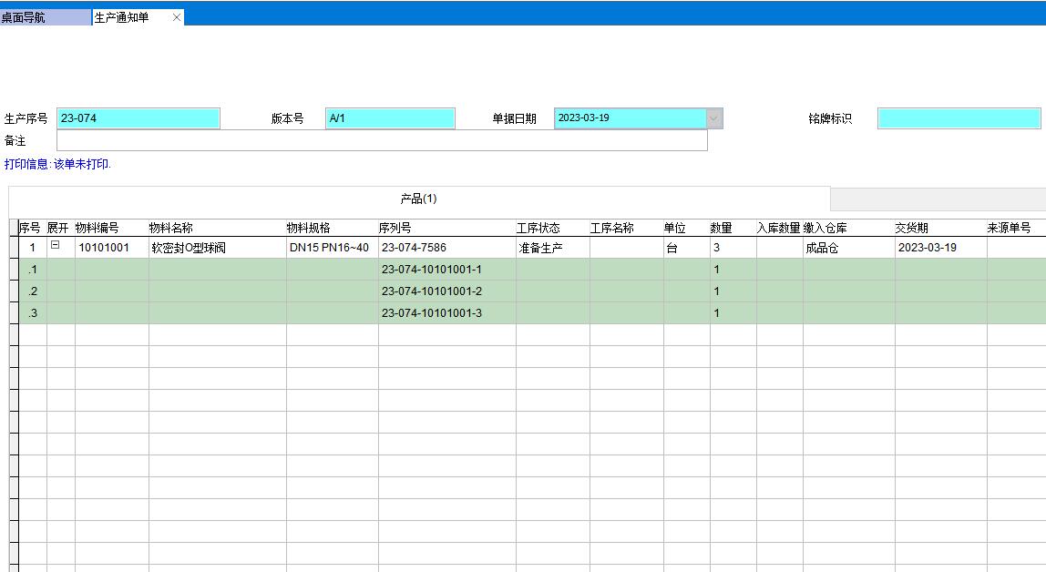 在巨靈鳥ERP中,產成品的序列號是在做生產通知單時自動生成,原材料的序列號是在入庫時自動生成。