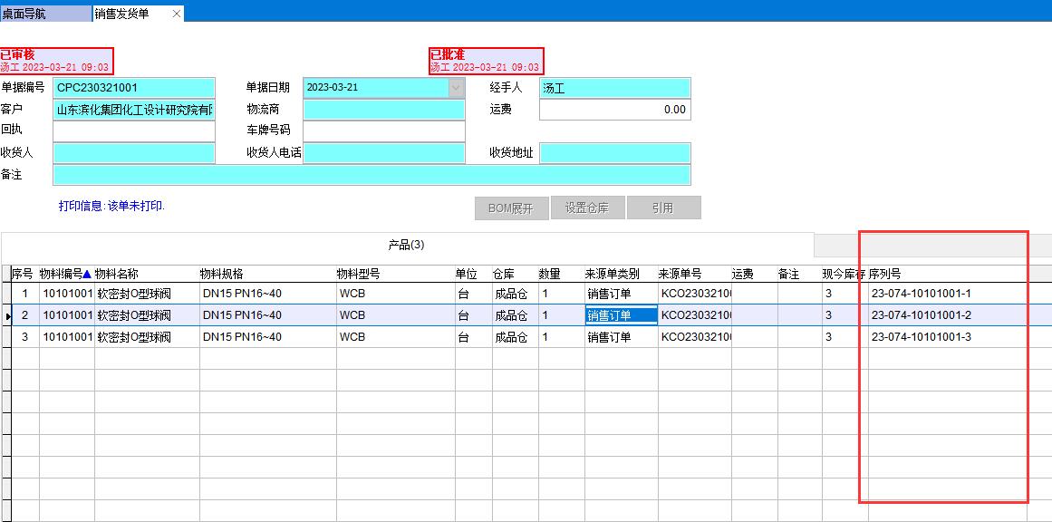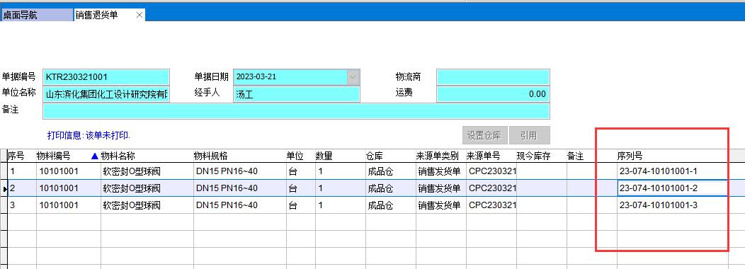 所有相關單據的序列號都要顯示出來,如成品入庫單、銷售發貨單、采購入庫單、生產領料單等