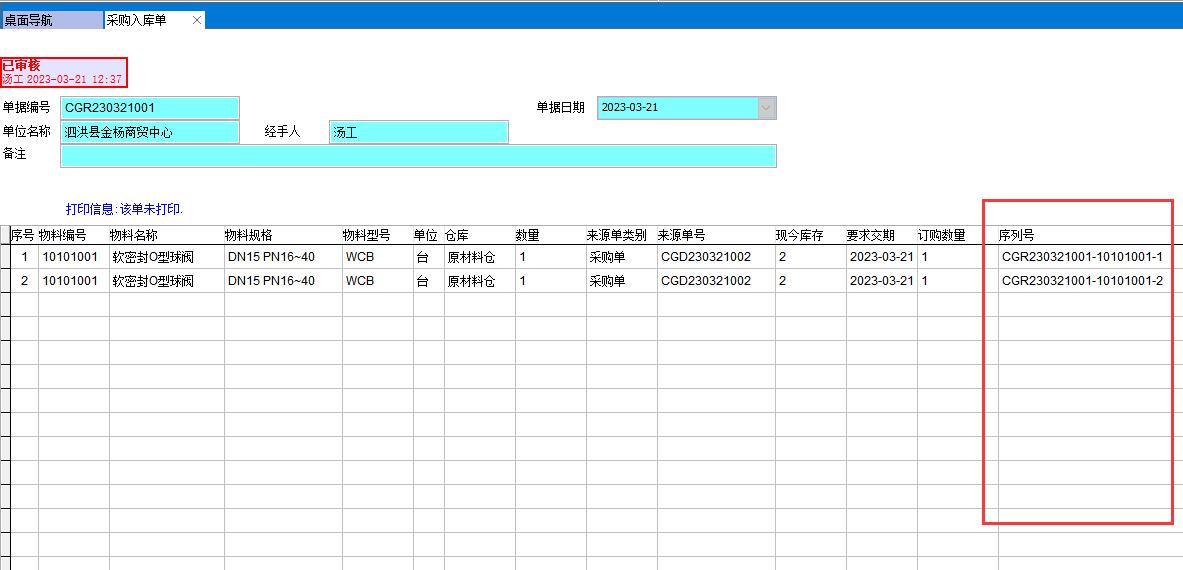 有時候早在采購業務中也會使用到序列號,比如對某個關鍵原材料(或零部件)進行唯一標識,需要跟蹤該物料的去向,以便日后質量追溯。