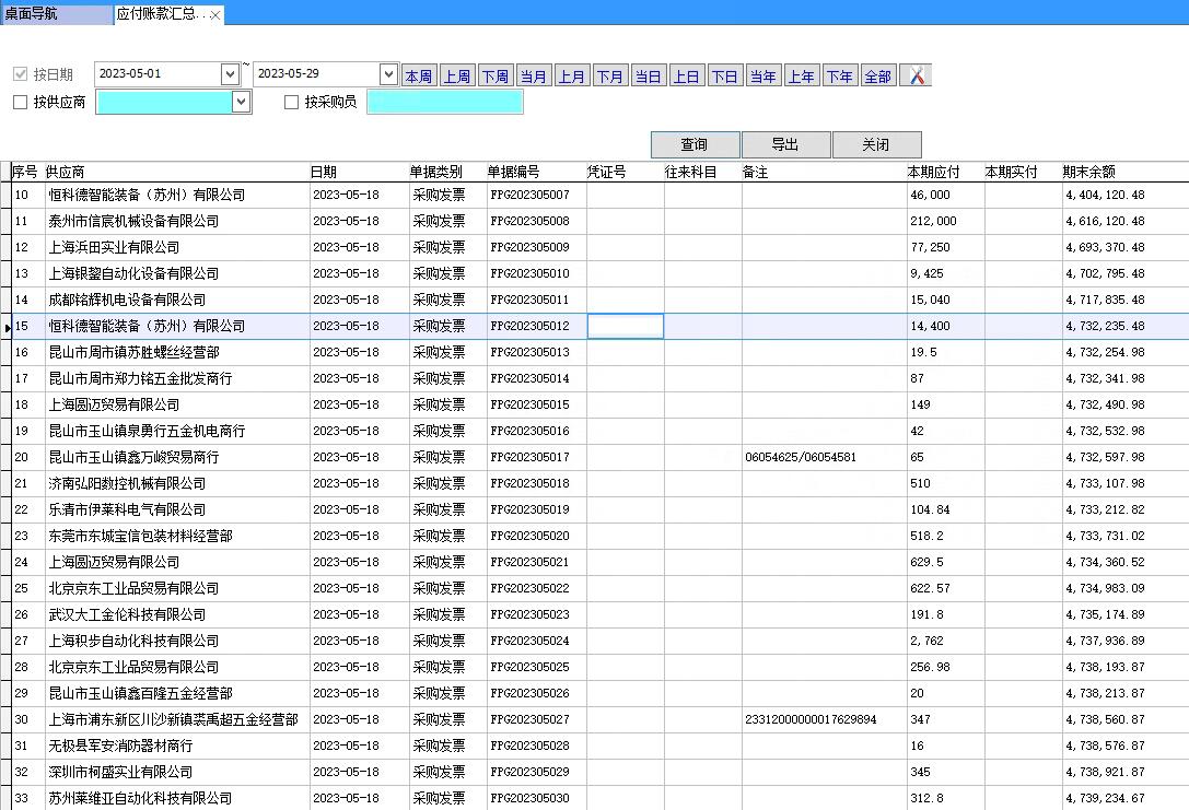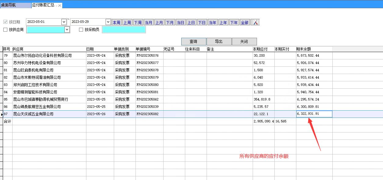 如果不是按單個(gè)供應(yīng)商查詢的話,這個(gè)期末余額就是本公司對(duì)所有供應(yīng)商的欠款余額