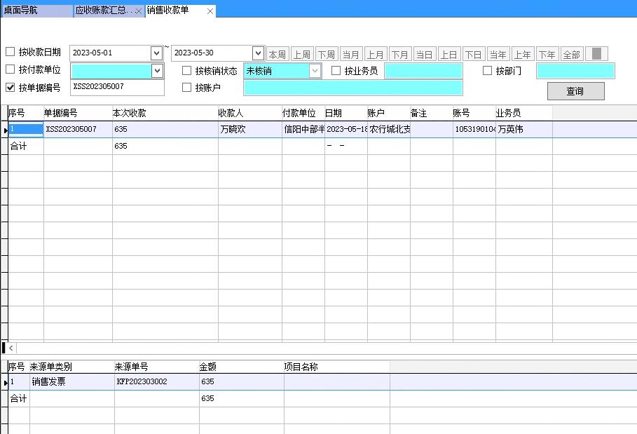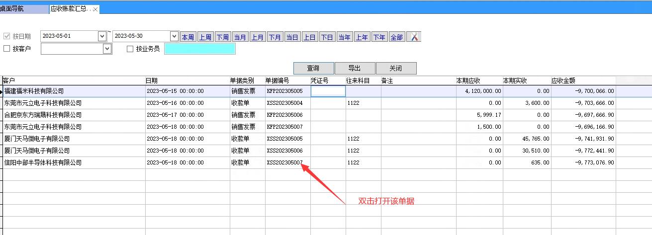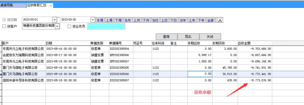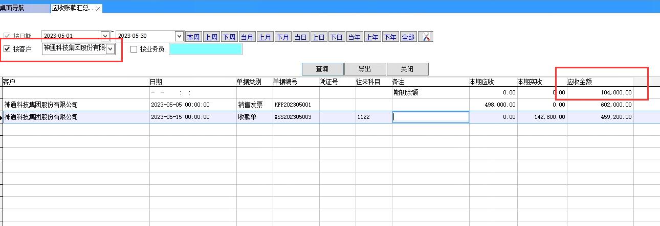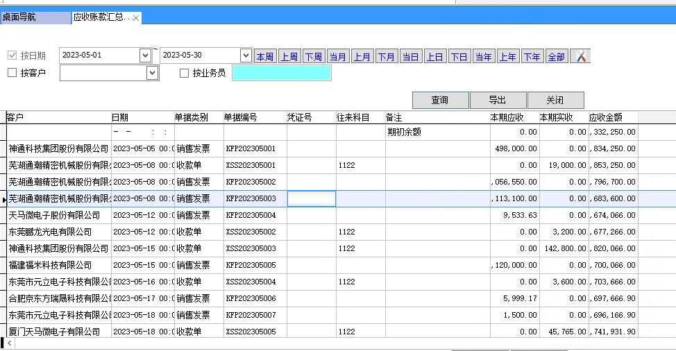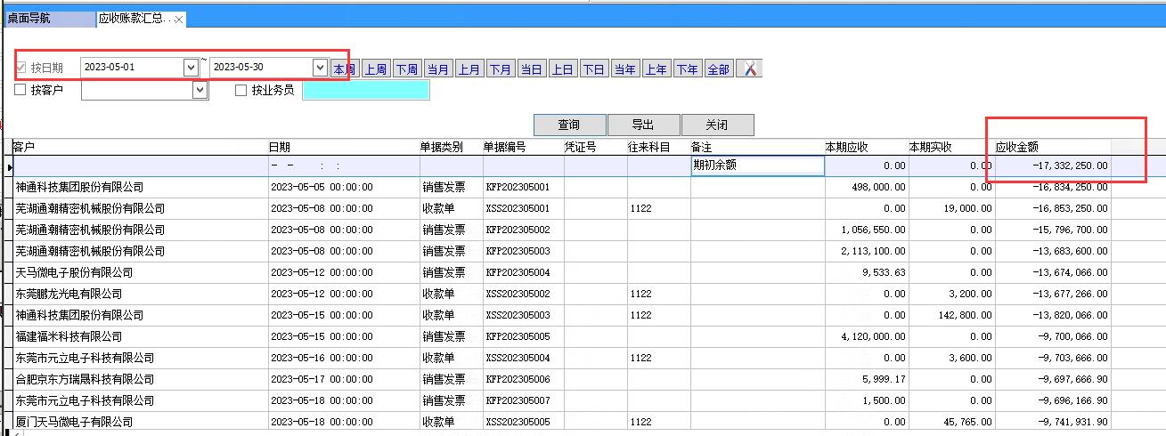 如上圖所示,如果是按某客戶查詢,應收期初余額就是5月1號前該客戶的應收金額