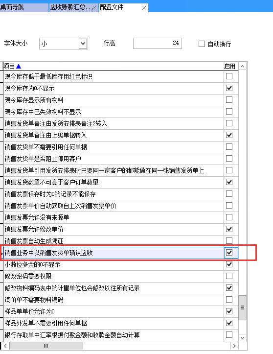 2、有些企業規定,以銷售發貨單作為應收的依據,即發了多少貨就向客戶收多少錢。這種情況下在配置文件中勾選此選項后,本期應收就以銷售發貨單作為應收的依據