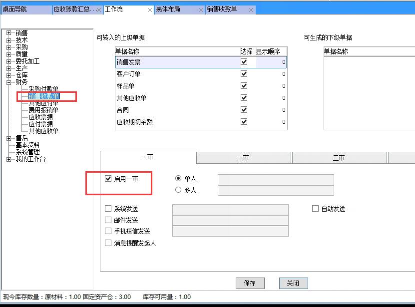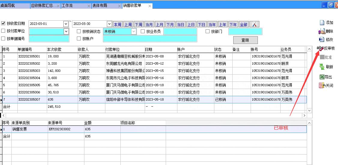 以銷售收款單作為收款的依據,如果銷售收款單設置了工作流的,必須走完流程才算生效,如果銷售收款單設置審核,則審核后的銷售收款單才算實收。