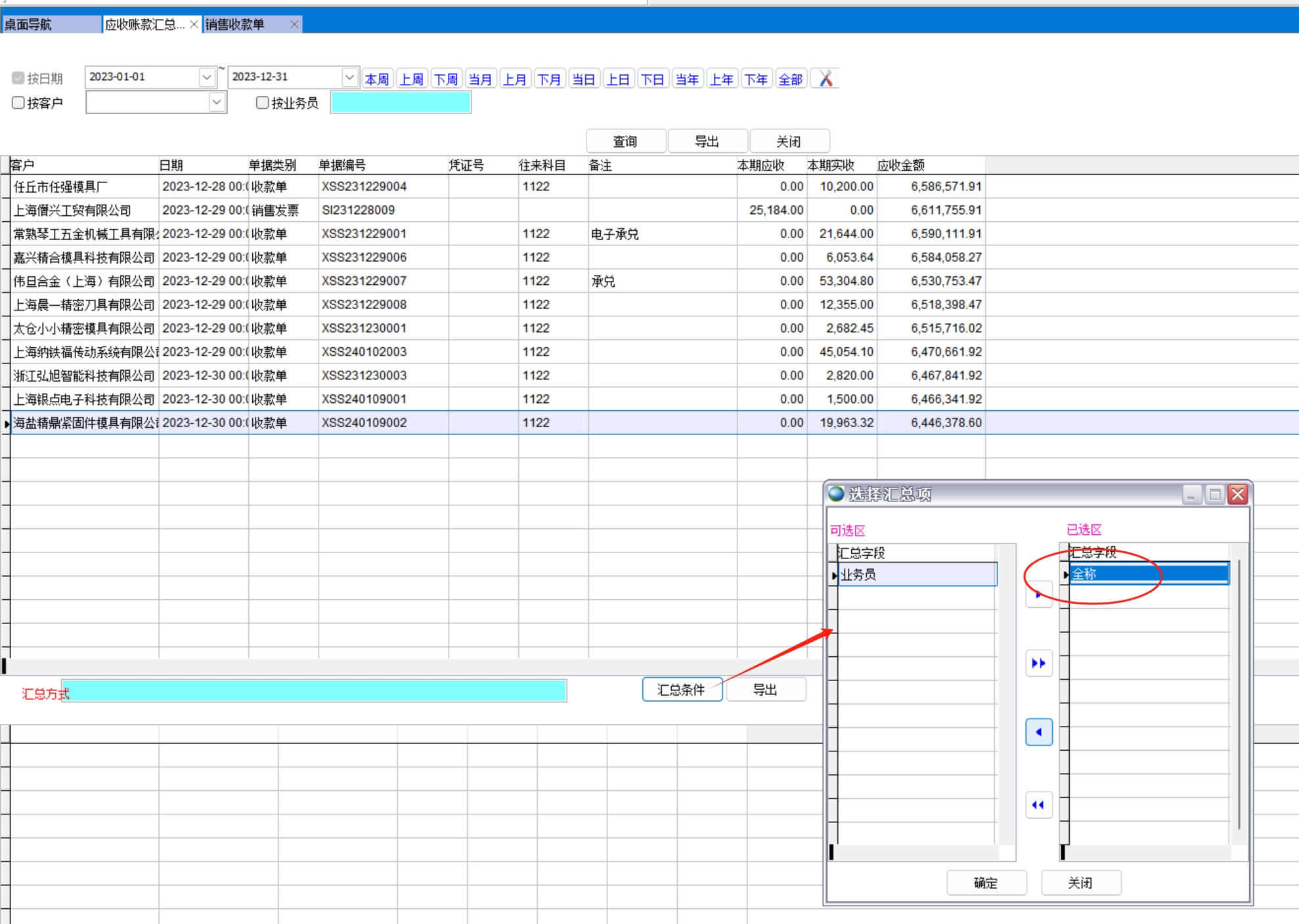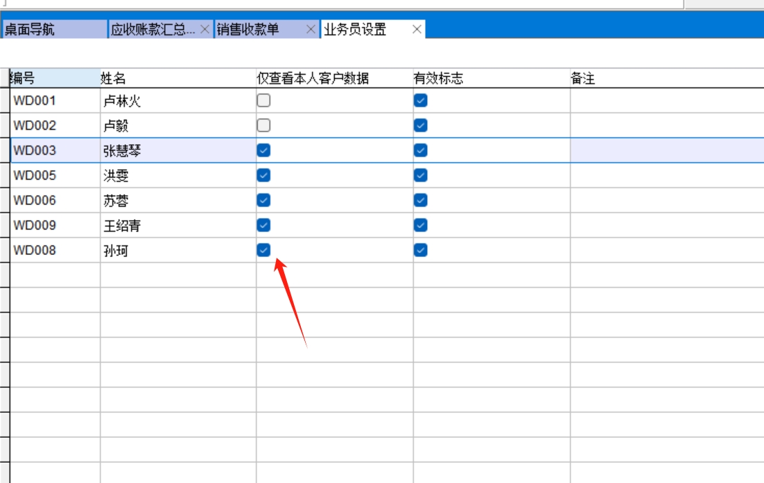 如果是業務員查看應收賬款匯總表,可以設置業務員是否只查看本人客戶的應收款信息