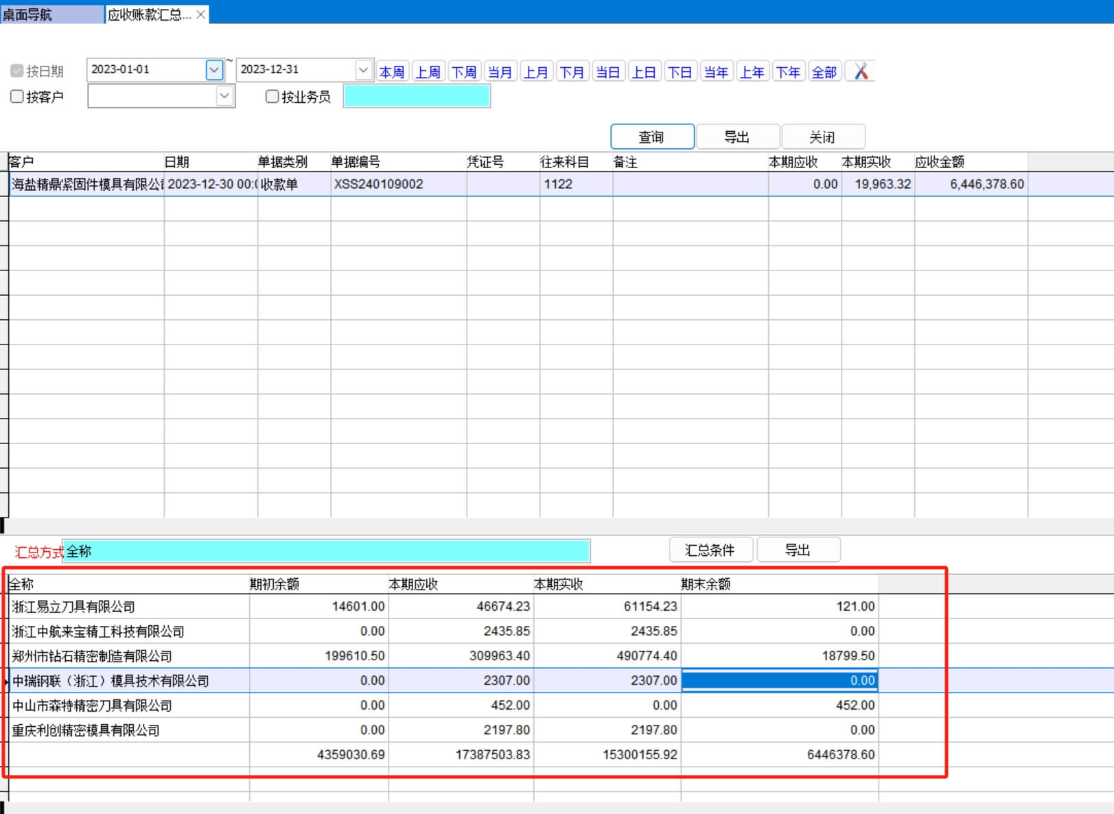 打開路徑:【主菜單】-【應收應付】-【報表】-【應收賬款匯總表】