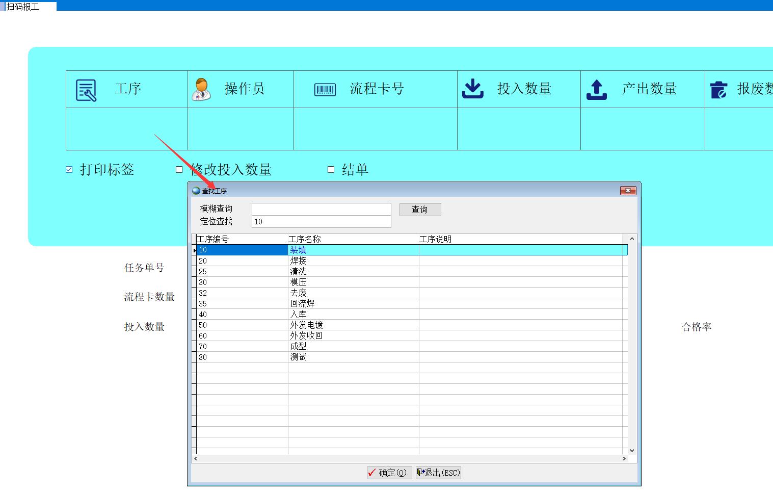 默認情況下在員工登錄時會綁定工序的,打開掃碼報工界面時會自動出現(xiàn)員工對應的工序的,但是也會存在員工多工序的情況,或者多個員工共用一臺電腦的情況,這時就需要選擇工序