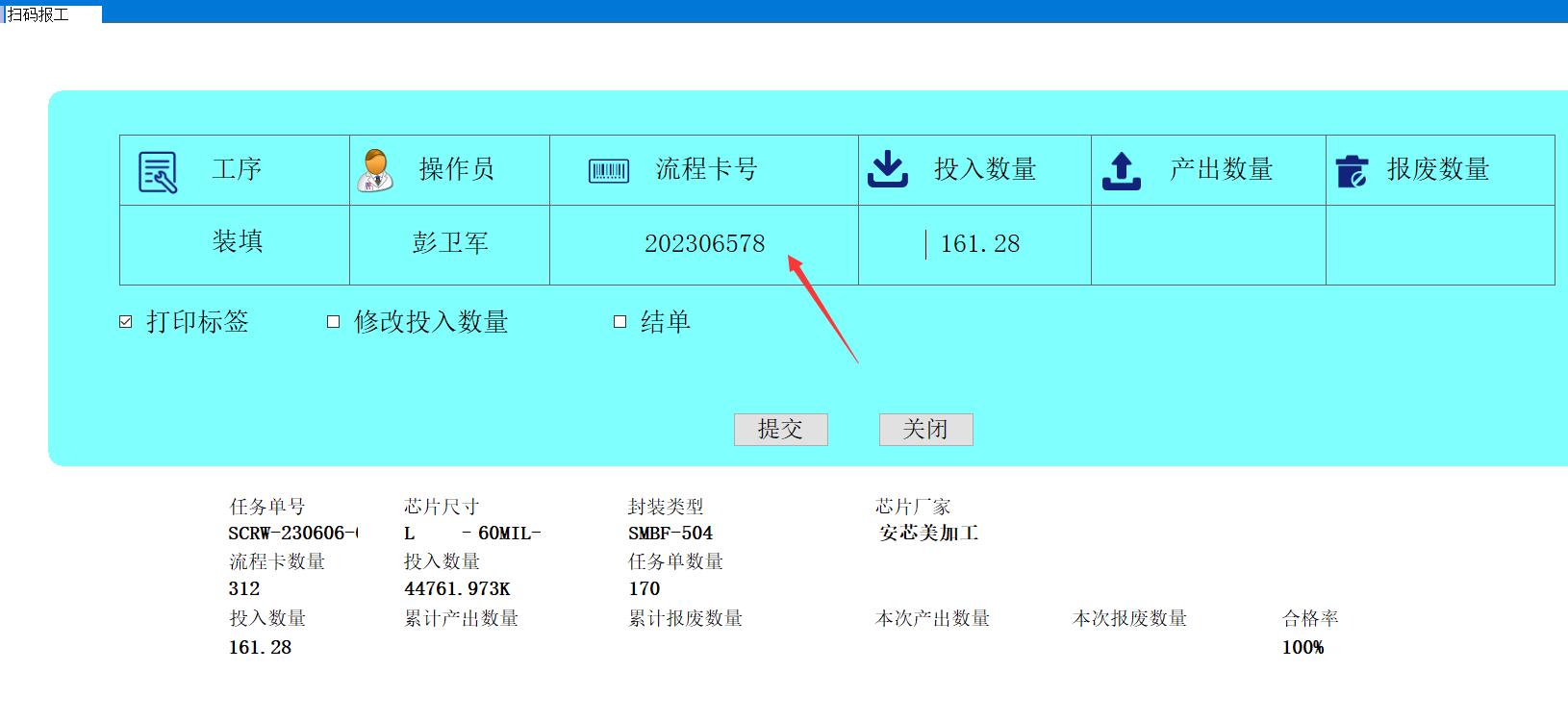掃碼成功后下面會出現(xiàn)該流程卡的相關信息