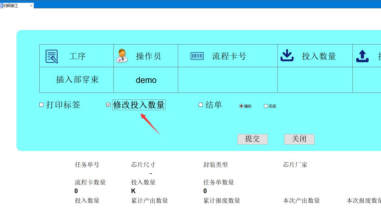如果還未到本工序的或本工序已經(jīng)掃過的會提示不在本崗位,如果掃碼后自動出現(xiàn)投入數(shù)量,掃碼就是成功的