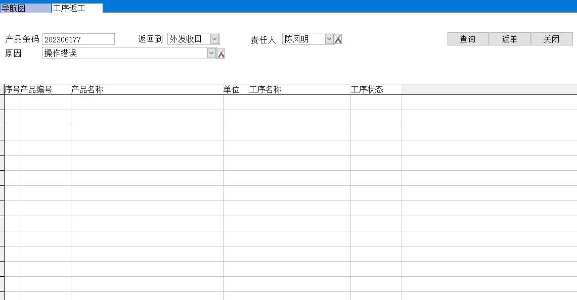 打開路徑:【主菜單】-【制造】-【工廠工藝】-【工序返工記錄】