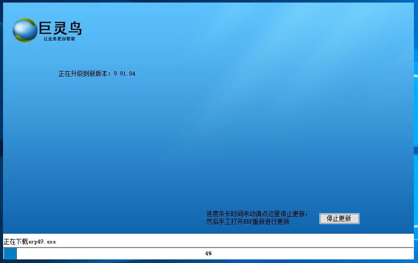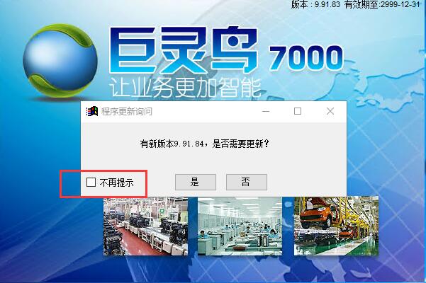巨靈鳥7000提供自動更新程序的功能,默認情況下有最新版本時,用戶打開ERP時會提示有最新版本是否需要更新