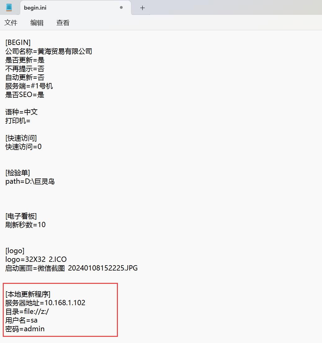 如果用戶之前已經選擇不更新程序了,現在又需要更新程序,可以打開ERP安裝目錄\tmp\begin.ini