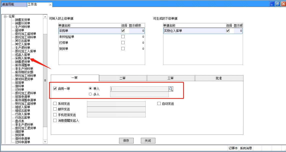 巨靈鳥ERP中默認的出入庫單據是沒有審核、批準的,需要在工作流中設置審批