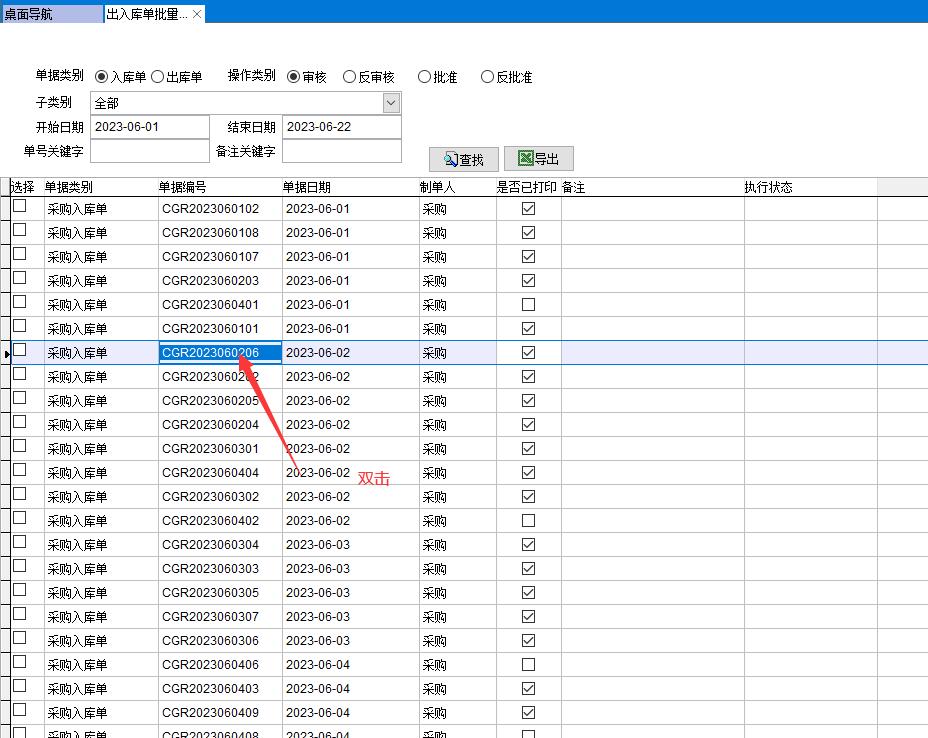 出入庫批量審核可以一次性對多個出庫單、入庫單進行審核、批準或反審核、反批準操作