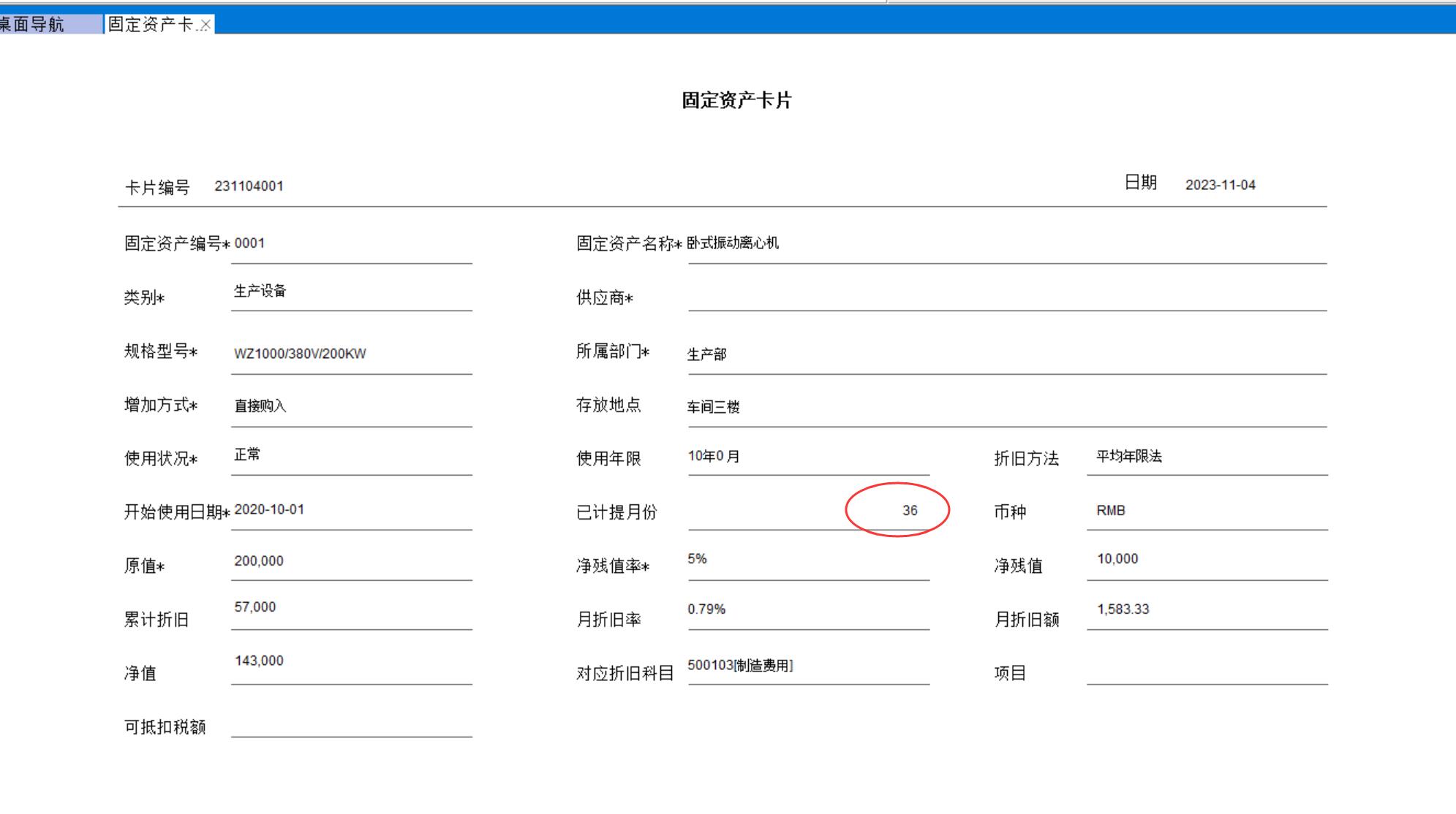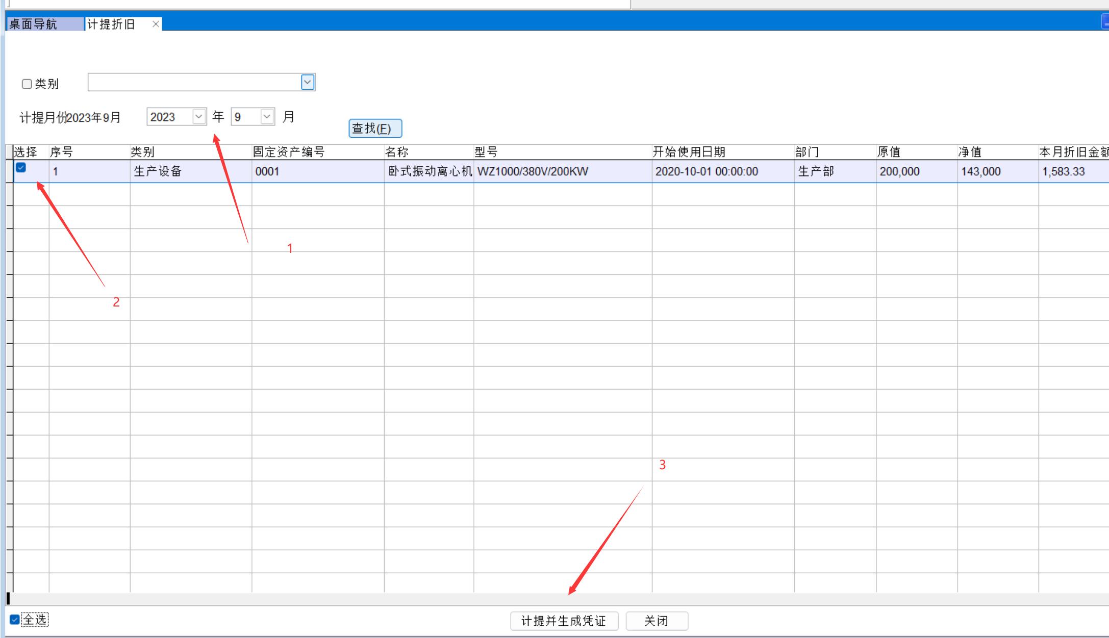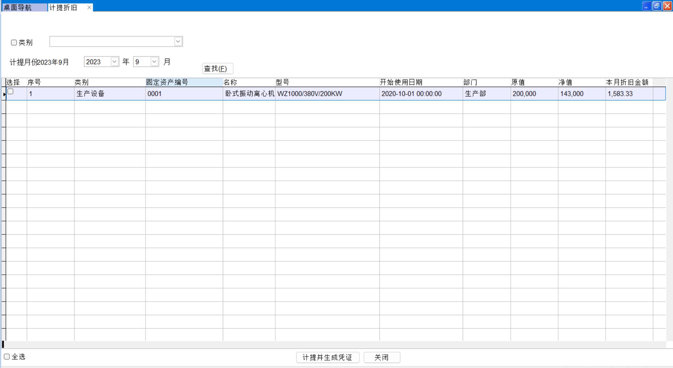 打開路徑:【主菜單】-【固定資產】-【計提折舊】