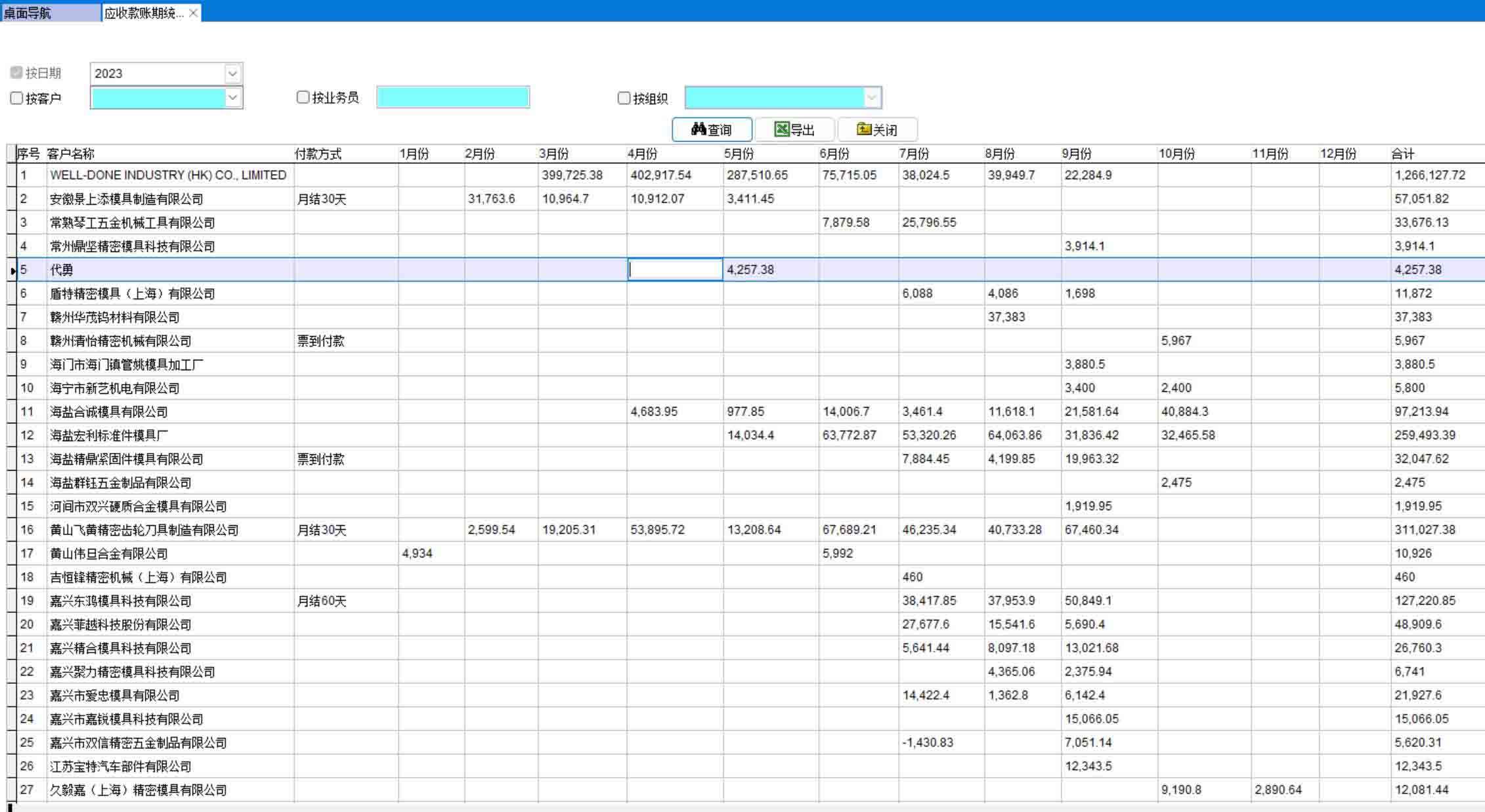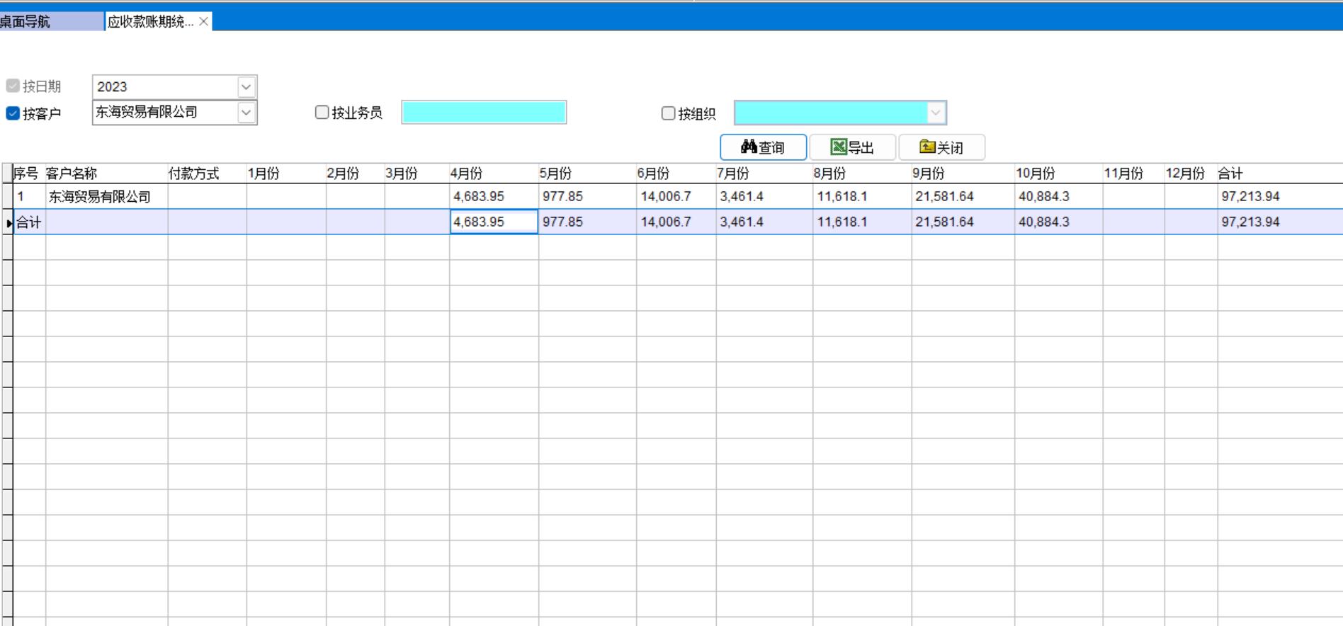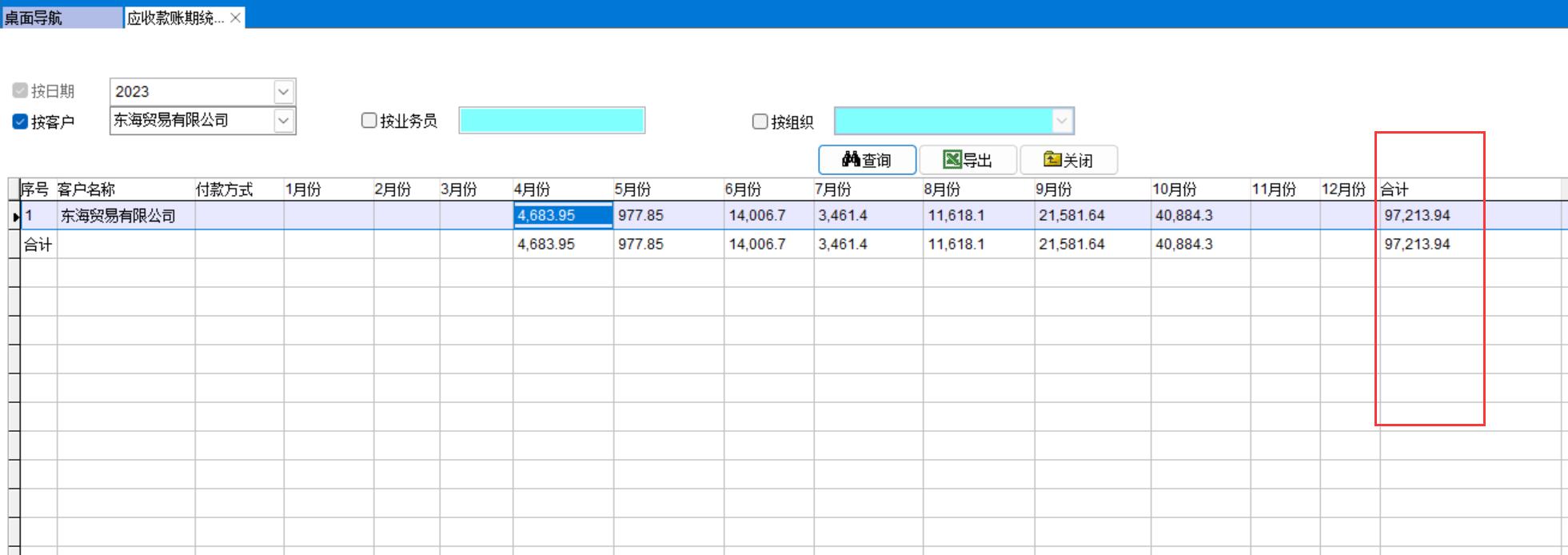 應(yīng)收款賬期統(tǒng)計(jì)表是為了讓企業(yè)領(lǐng)導(dǎo)能直觀了解每個(gè)月份應(yīng)收金額多少的統(tǒng)計(jì)表。可以導(dǎo)出任意月份任意客戶的應(yīng)收金額,交給相關(guān)部門進(jìn)行催款