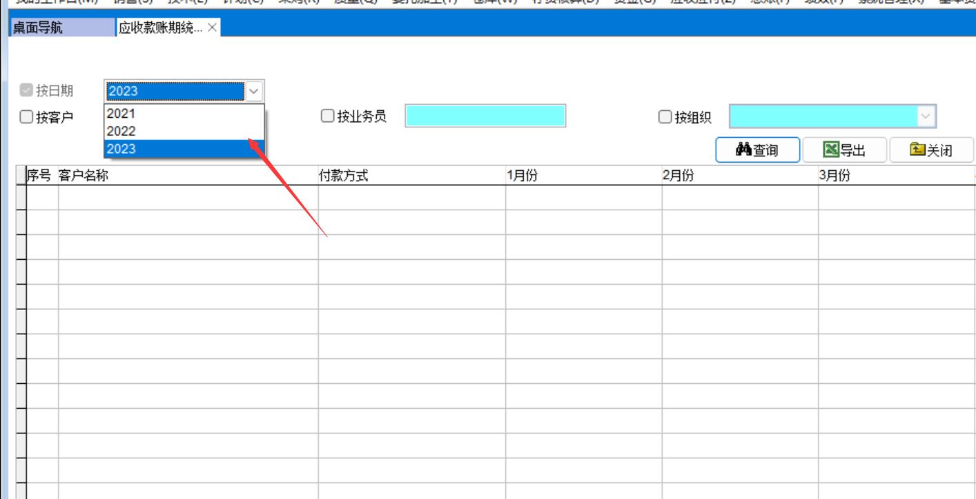 打開路徑:【主菜單】-【應(yīng)收應(yīng)付】-【報(bào)表】-【應(yīng)收款賬期統(tǒng)計(jì)表】