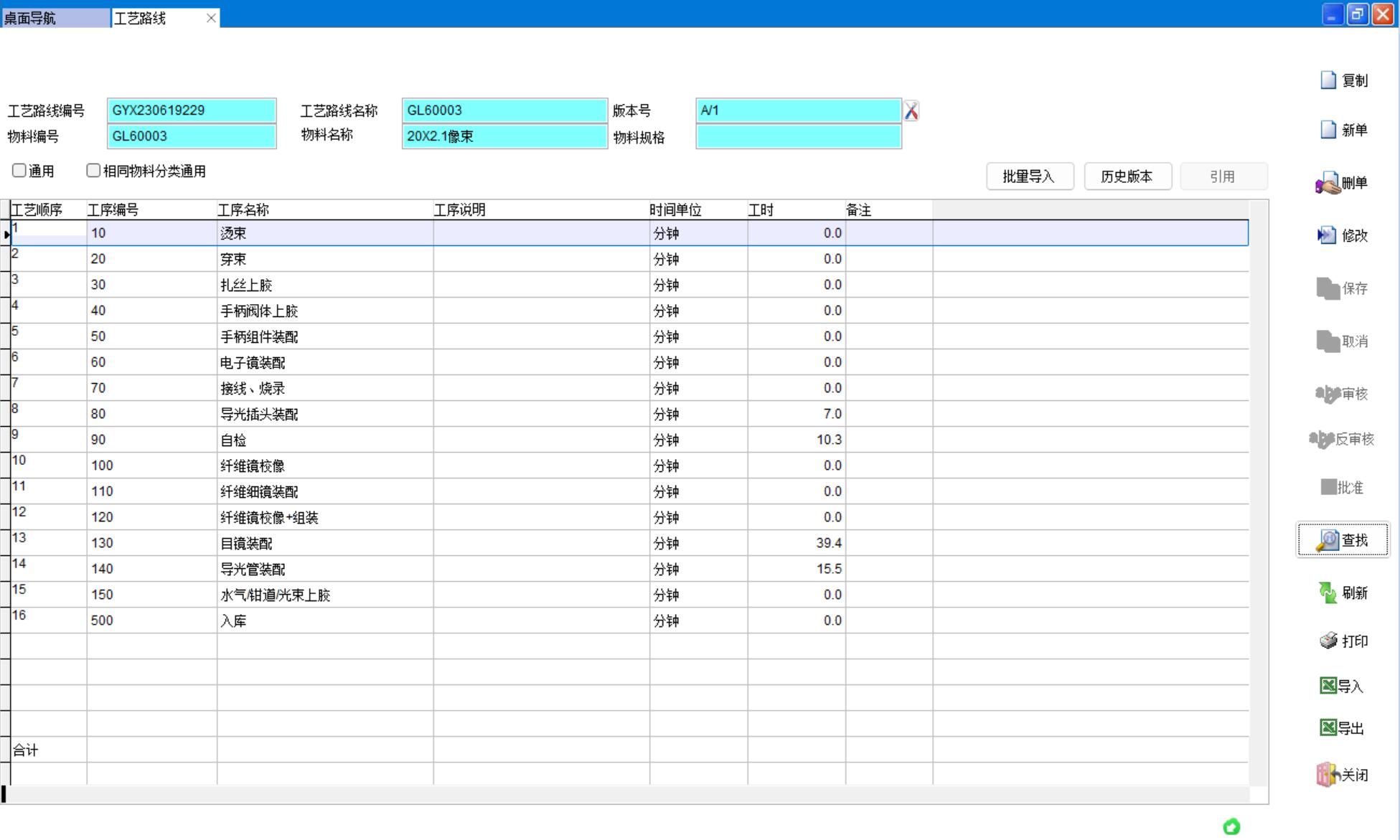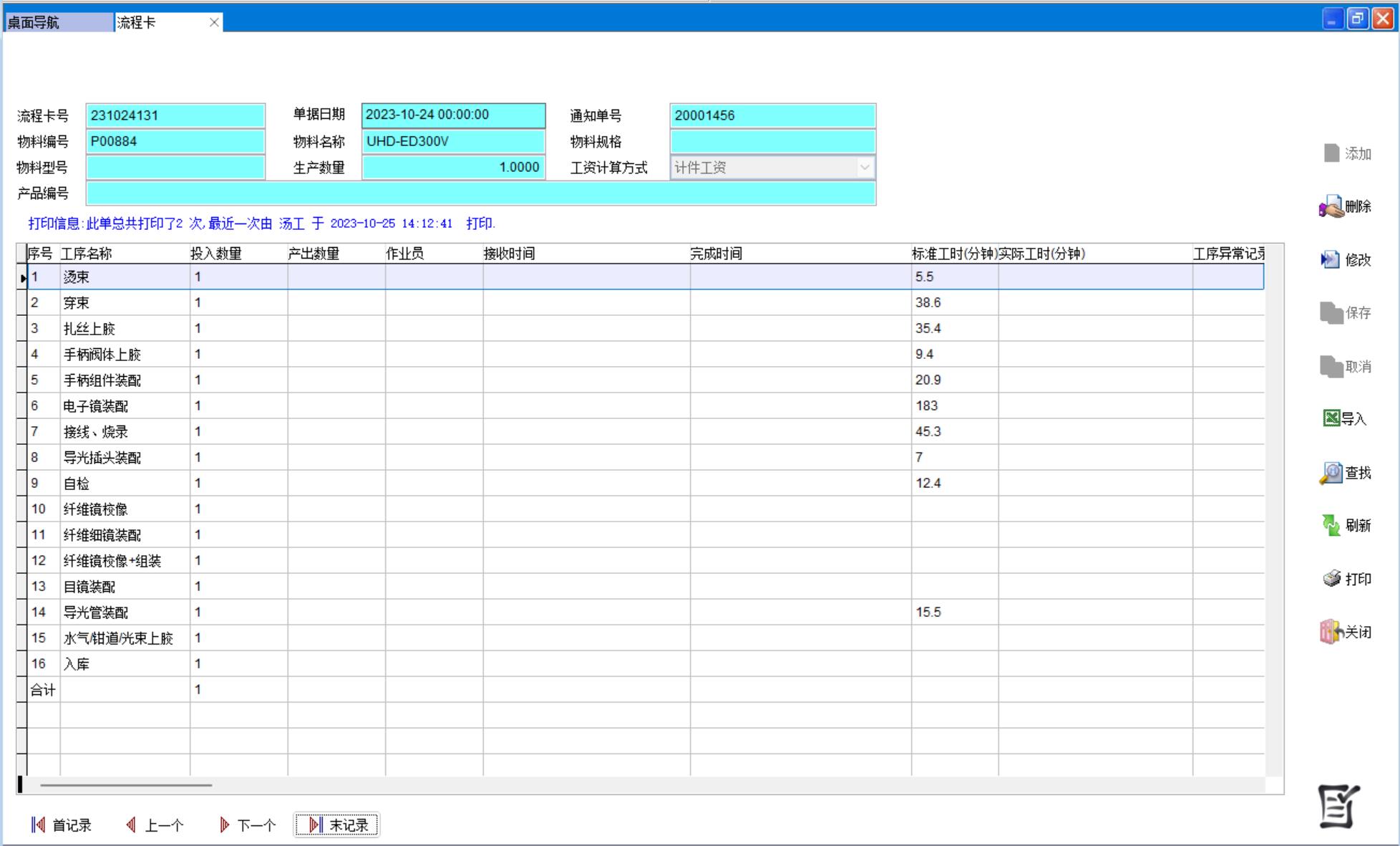在工藝路線中可以設置標準工時,工時統計表可以顯示標準工時和實際工時