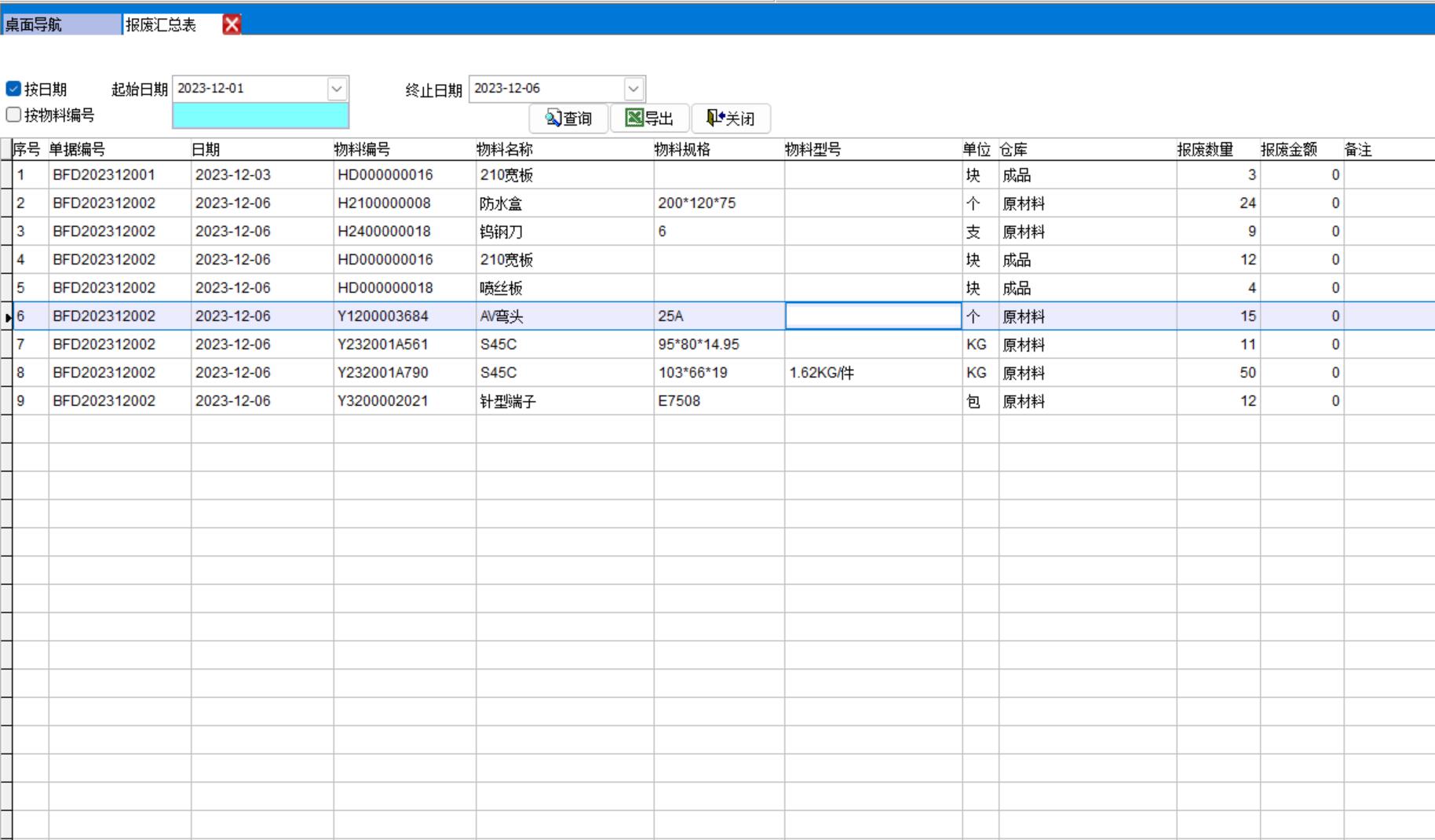 報(bào)廢匯總表是對(duì)所有報(bào)廢單進(jìn)行匯總