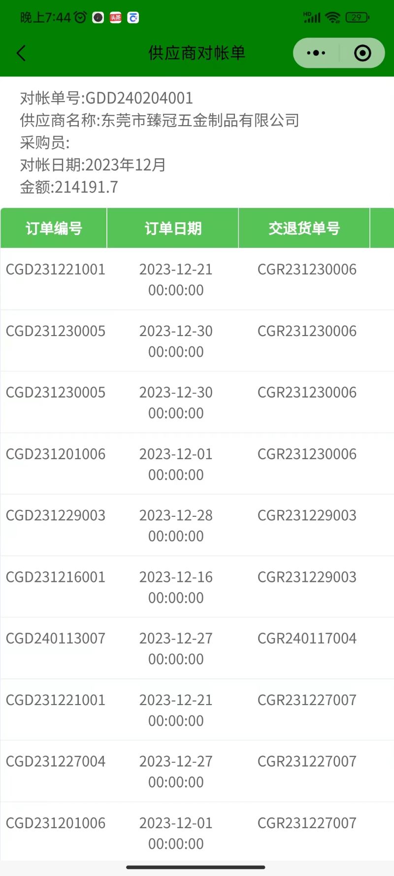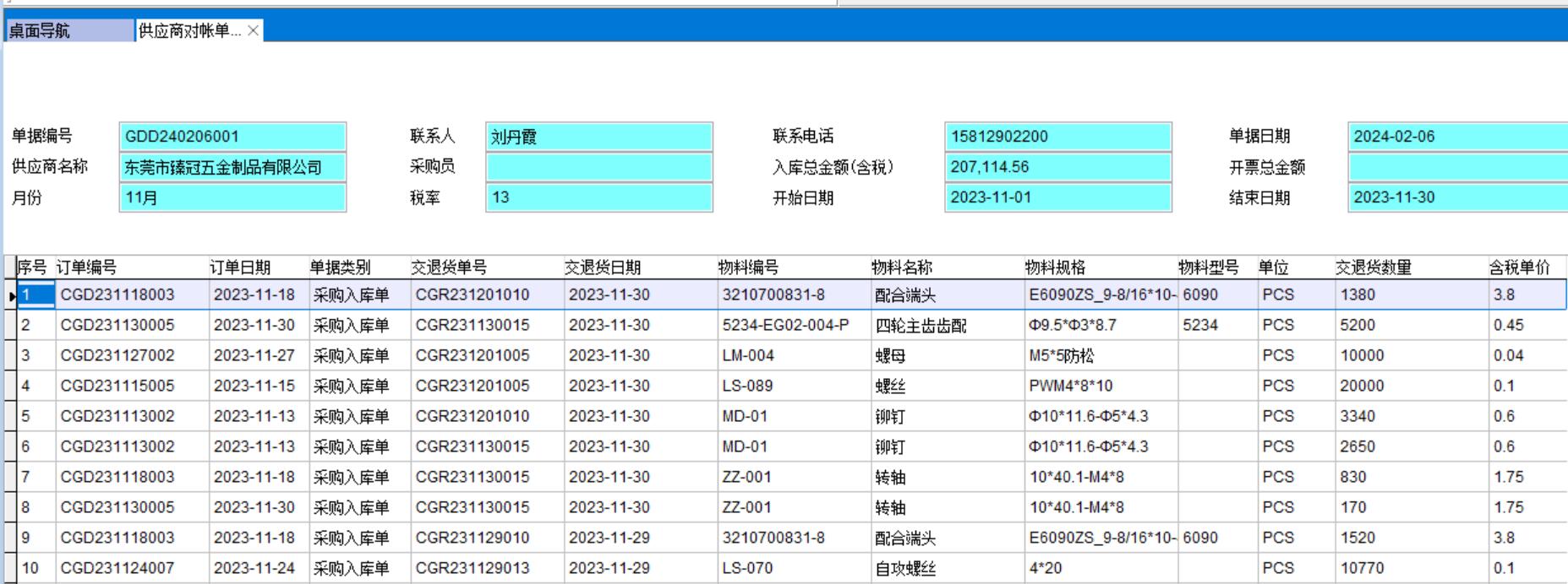 供應商對帳單用于記錄該時間區間內供應商交退貨記錄