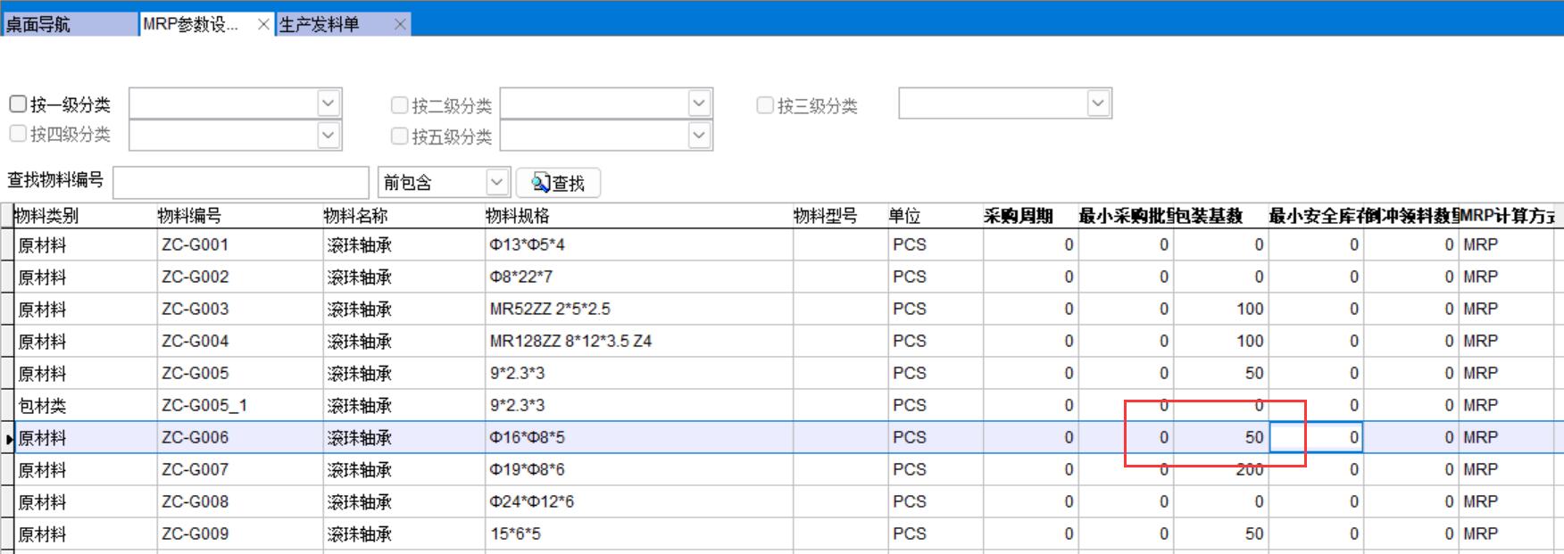 1、設置包裝基數(或倒沖數量都可以),如下圖,這個滾珠軸承包裝基數50