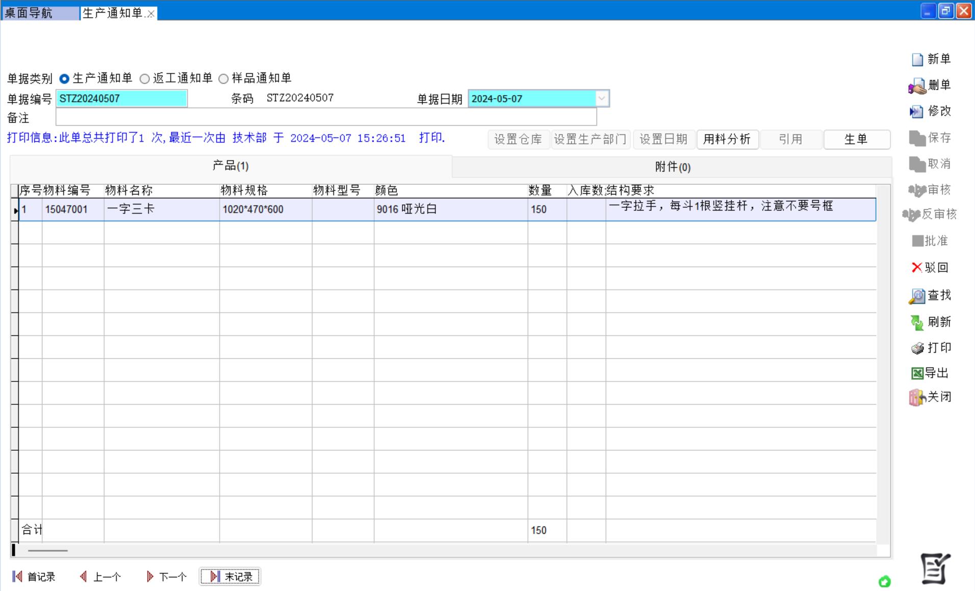 打開路徑:【首頁】-【工作臺】-【生產】-【生產通知單】