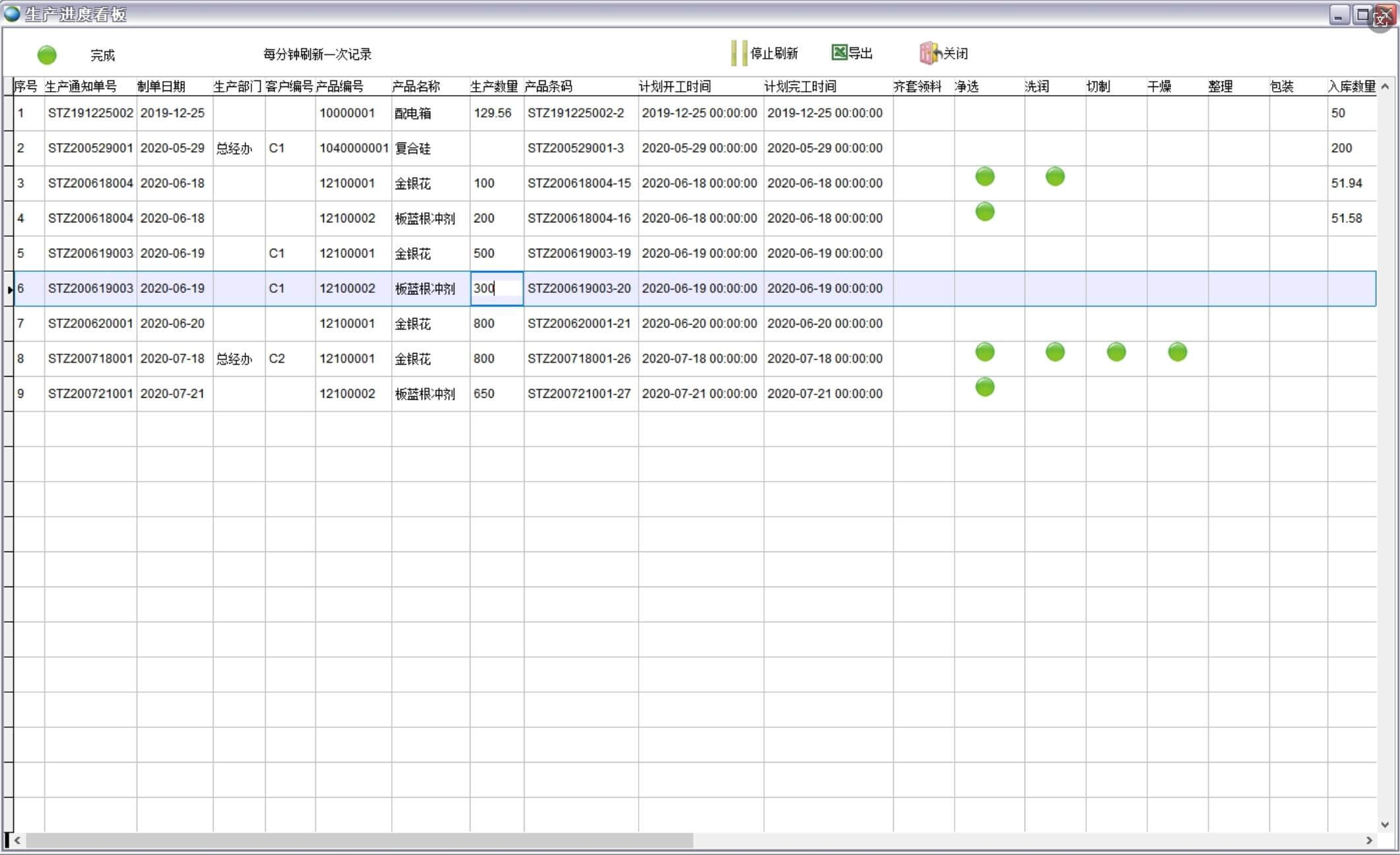 產(chǎn)品工序完成情況