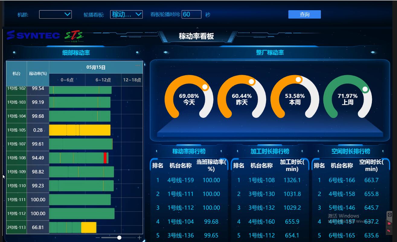 當(dāng)日、昨天、本周上周稼動(dòng)率