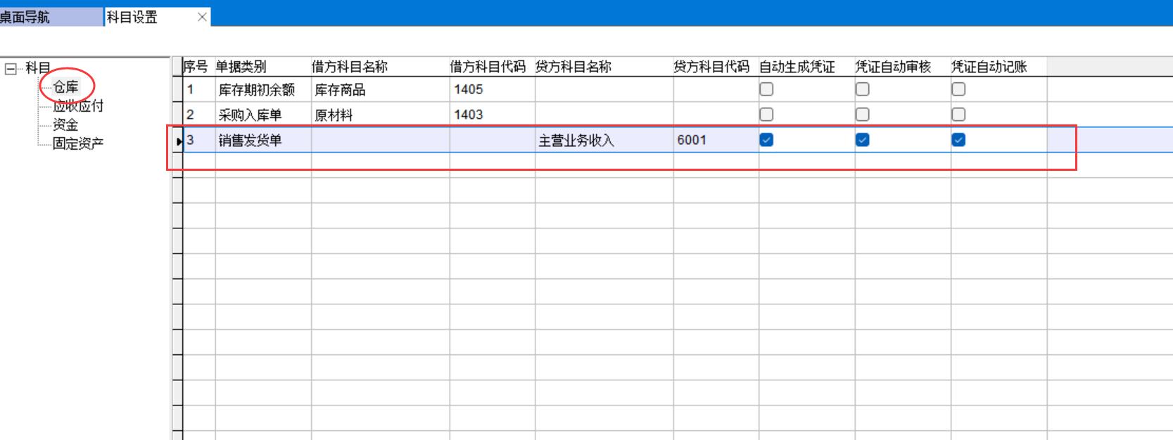 銷售發貨單要能自動生成憑證需要正確的設置借貸科目。