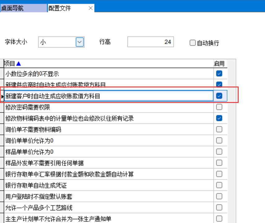 配置文件中勾選新建客戶時自動生成應收賬款借方科目,設置后當新建客戶時會自動生成三級科目
