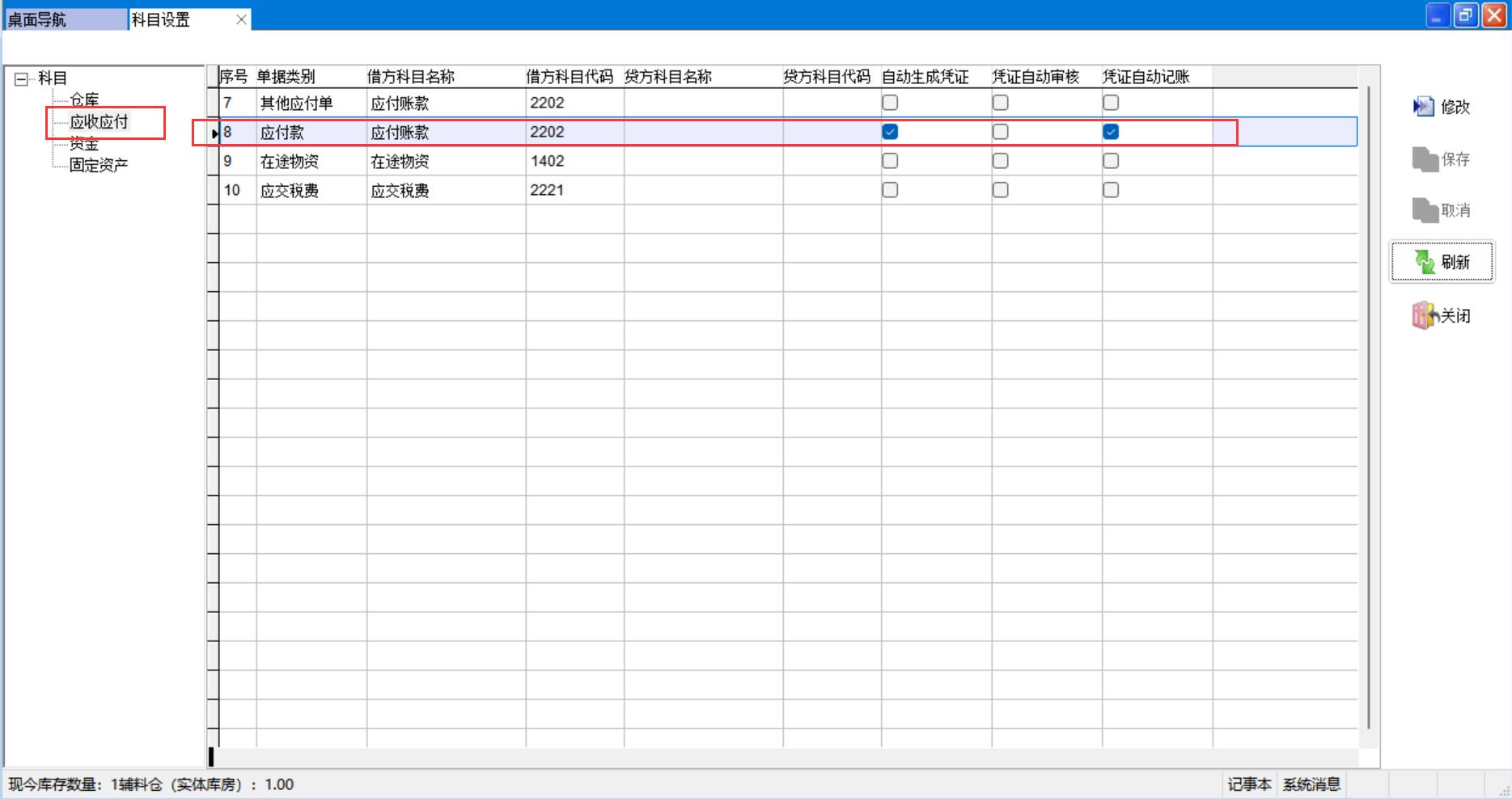 在科目設(shè)置中設(shè)置借方科目應(yīng)付賬款,貸方科目可以不填