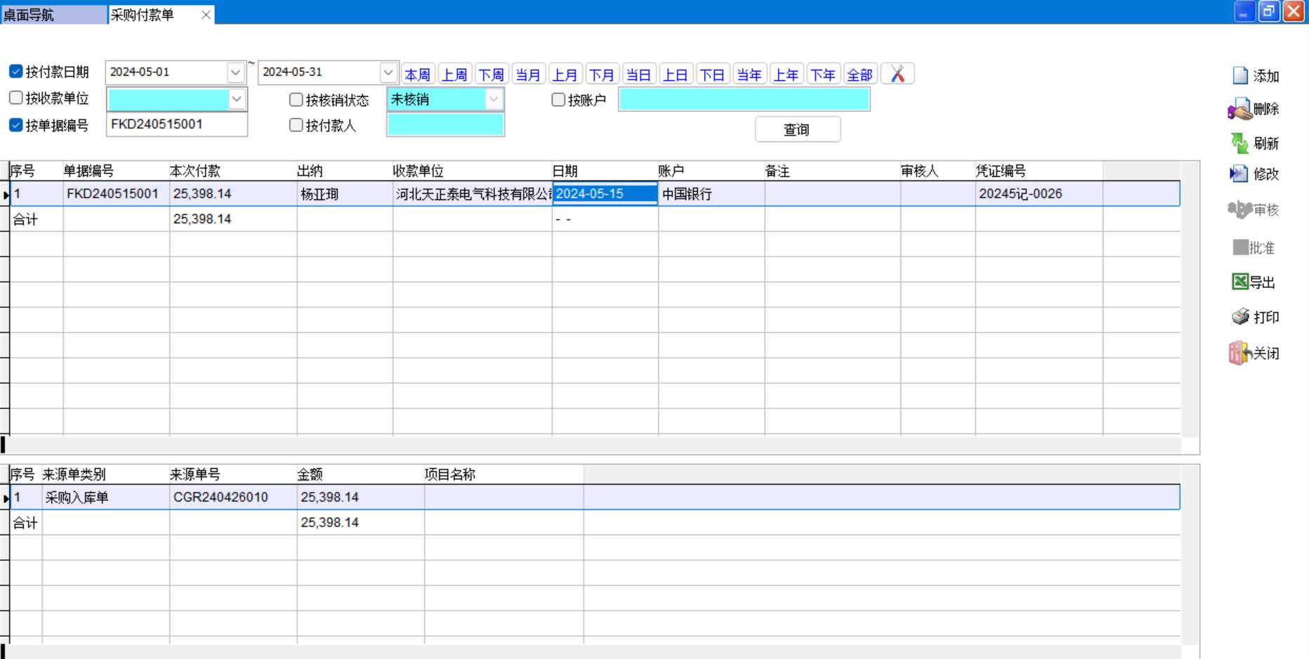 生成憑證前財務(wù)先確認所有采購付款單都已修改完成。