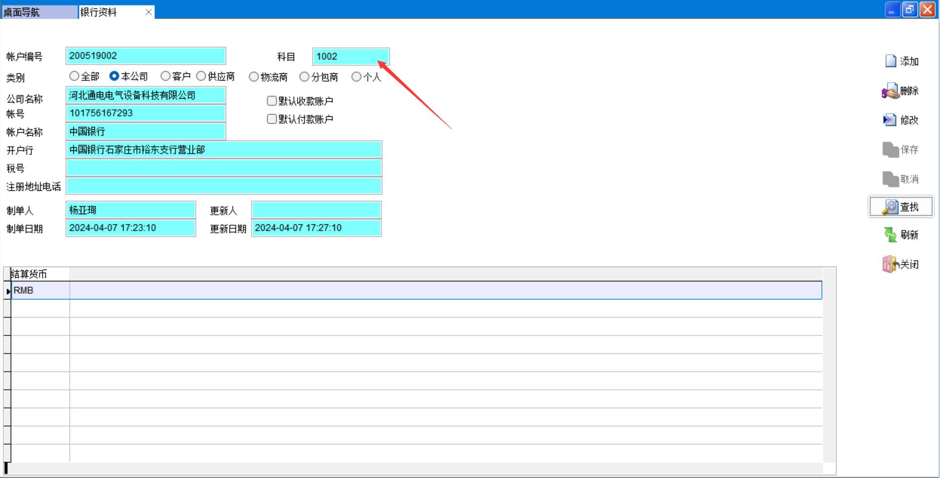 那么貸方科目是怎么出現(xiàn)的呢,從采購付款單可以看出,付款賬戶是中國銀行,在基本資料-銀行資料中我們設(shè)置了中國銀行的科目,這個就是貸方科目。因此貸方科目不是固定的,根據(jù)采購付款單中從哪個賬戶付款決定。