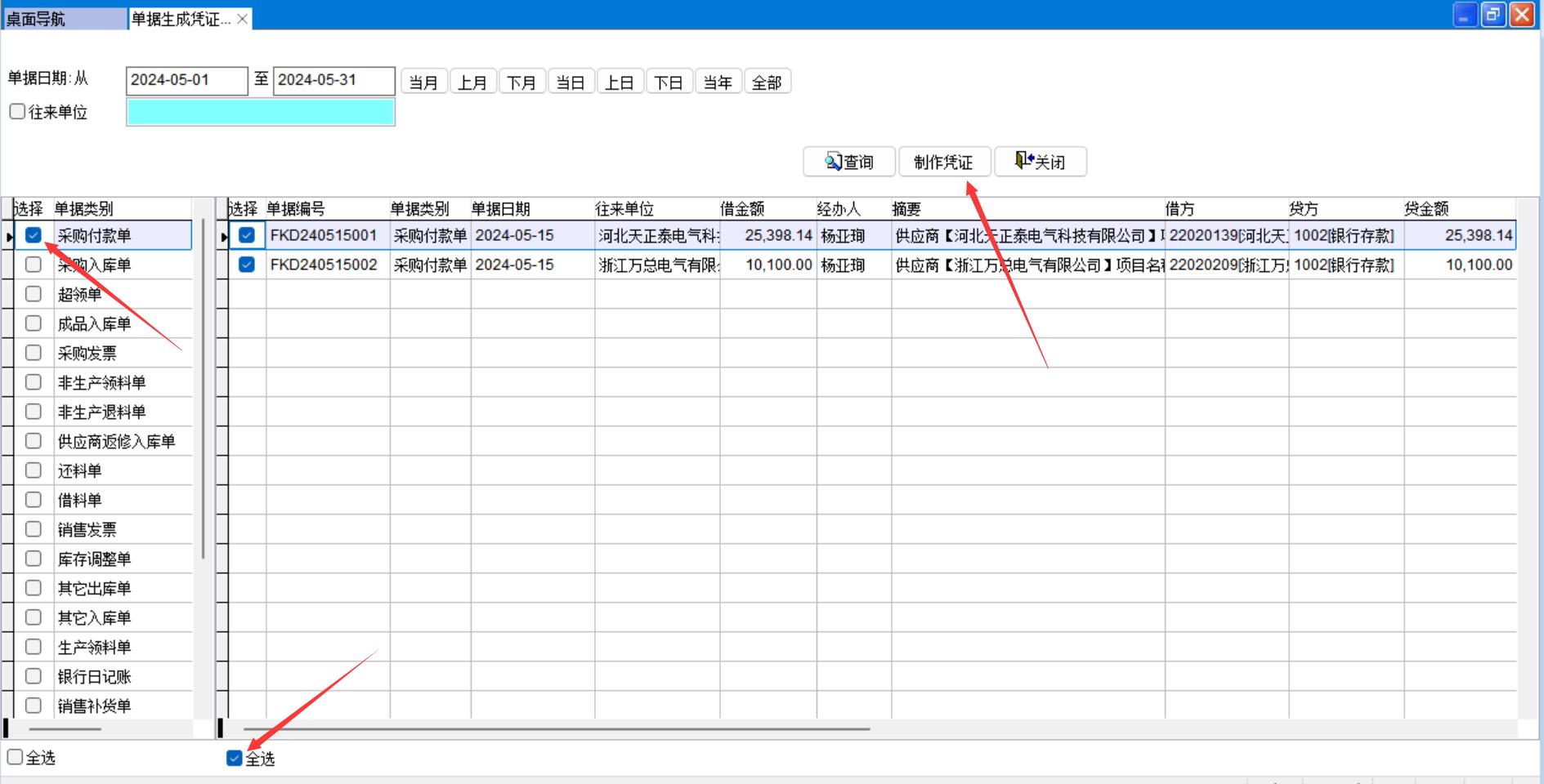 采購付款單可以自動生成憑證,也可以手工批量生成憑證。