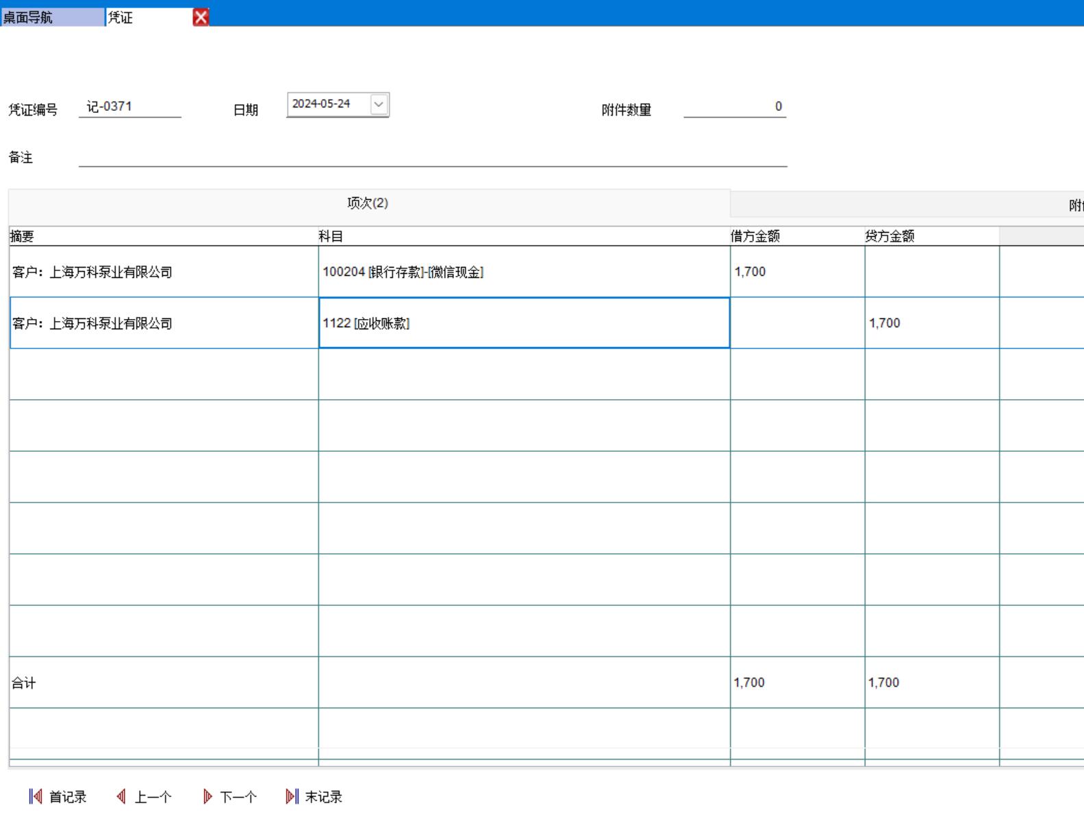 注意上圖的貸方科目就不是一級(jí)科目了,在建客戶資料表時(shí)會(huì)自動(dòng)生成該客戶一個(gè)應(yīng)收賬款的下級(jí)科目